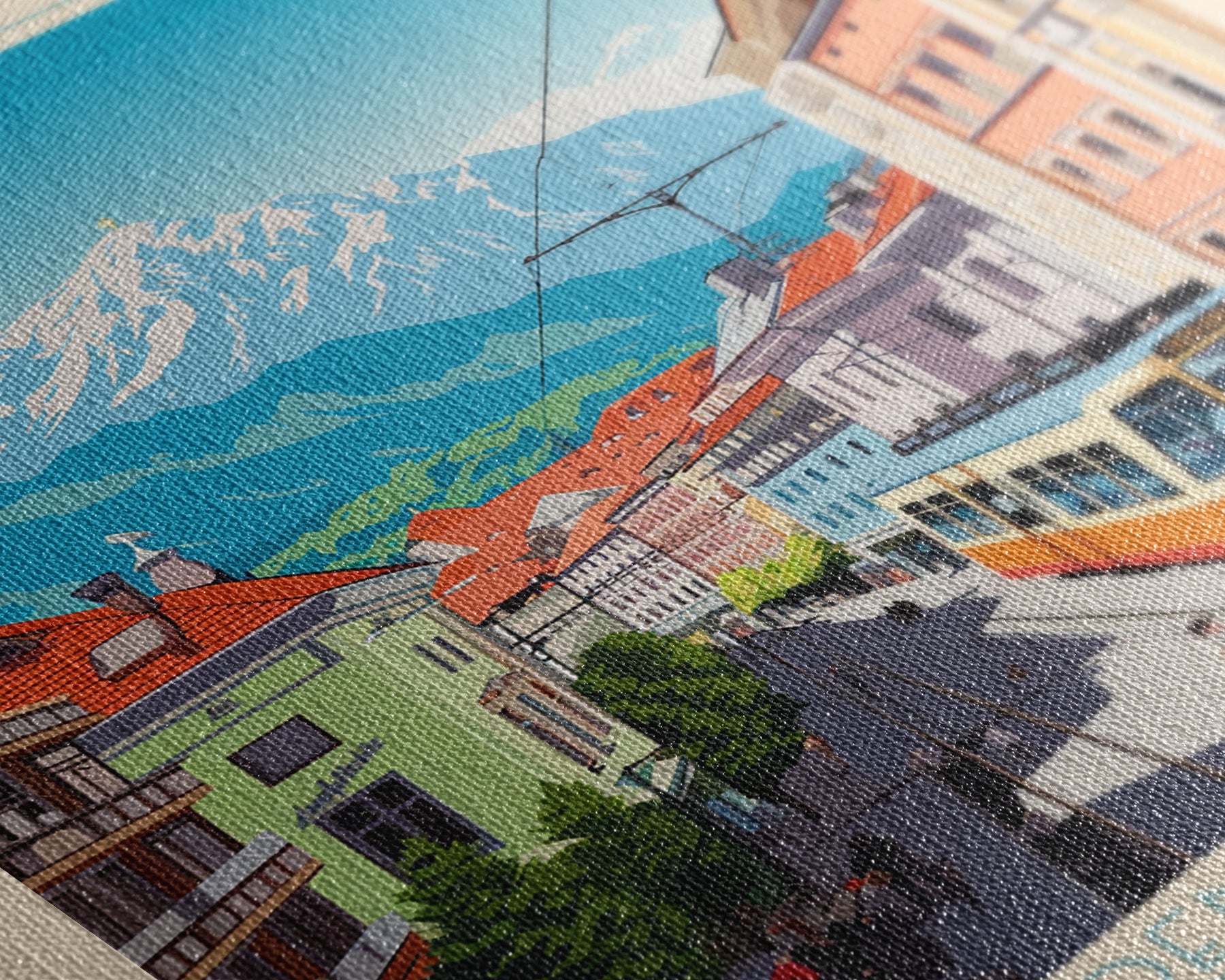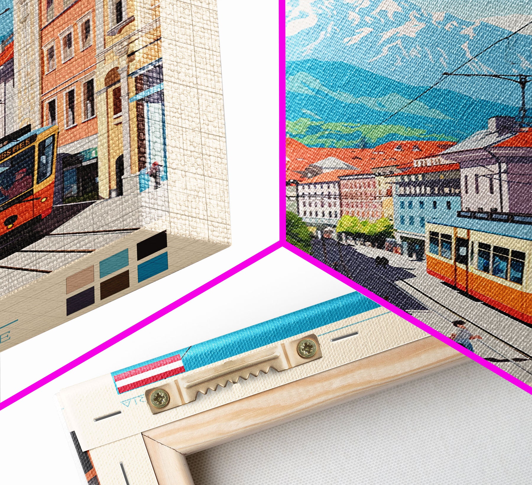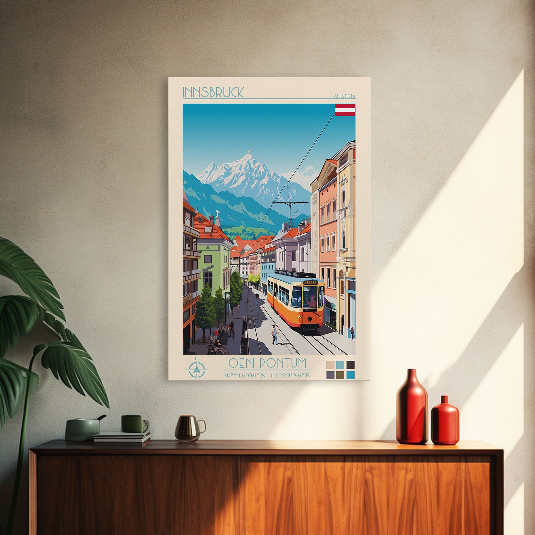 Innsbruck Austria Travel Poster Framed Canvas Print, Midcentury Modern Art, Pop Art Wall Decor, Scenic Wall Art, Living Room Decoration, Office Art