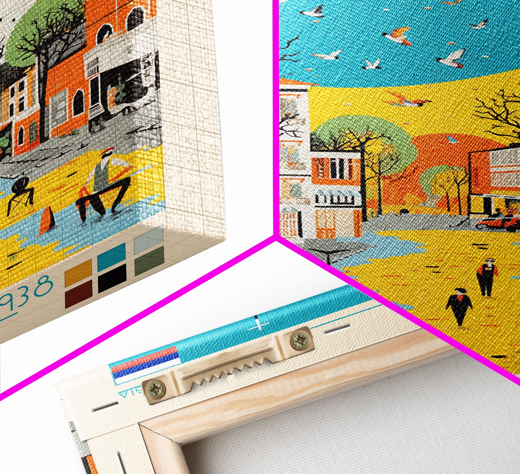 Hello and thank you for taking the time to view our modern high quality giclée artwork! We offer both posters and stretched canvas prints. Our posters are printed on Ultra Matte 60 lb / 230 GSM high quality photo paper, with a thickness of 10 mil. Our canvases are printed on museum grade 350 GSM canvas material with ECO friendly archival grade ink, then hand stretched and stapled over premium, FSC certified and shrink resistant frames. Designed and built to last a lifetime.