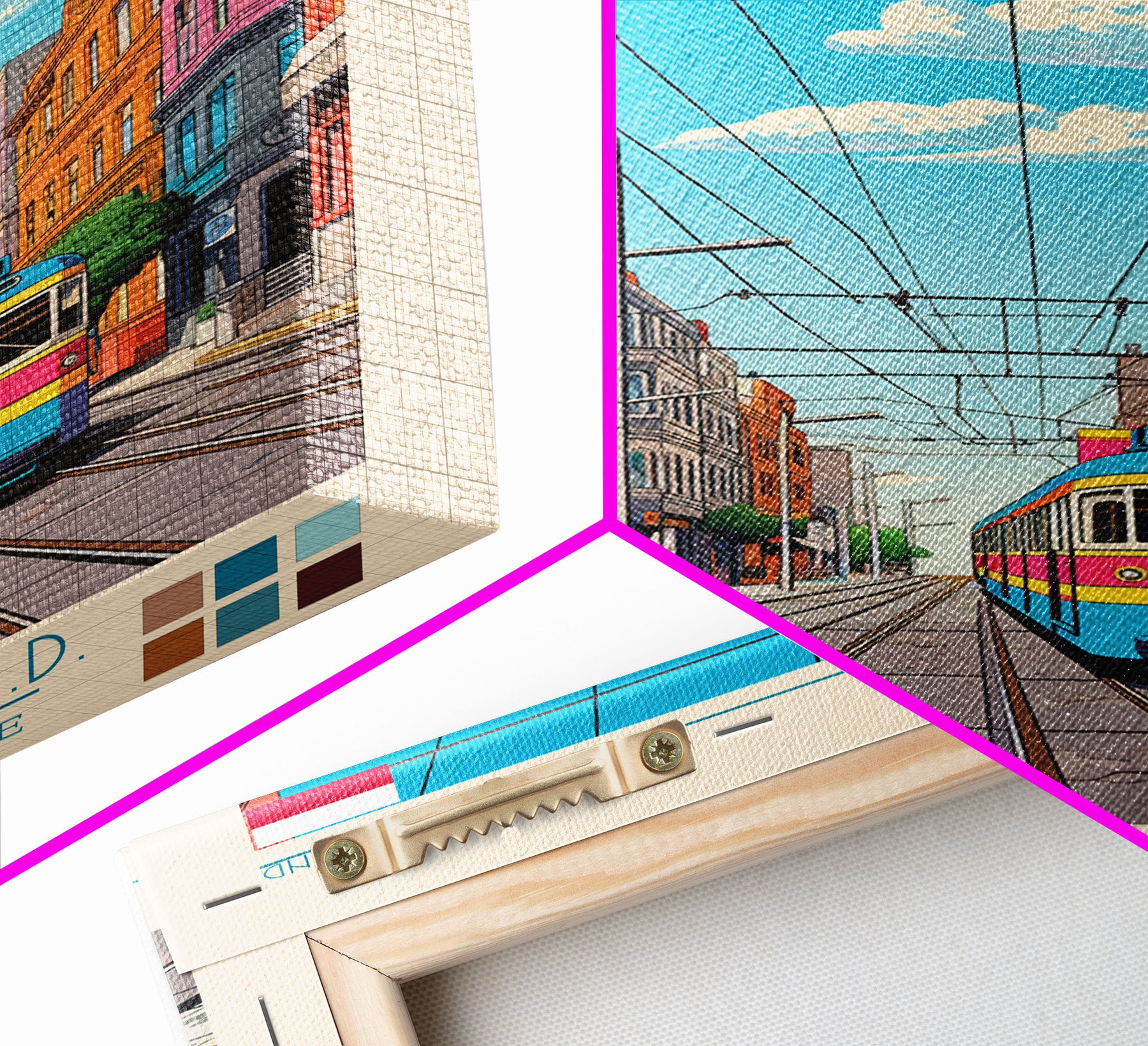 Łódź Poland Travel Poster Framed Canvas Print, Midcentury Modern Art, Pop Art Decor, Living Room Wall Art, Vacation Gift, Home Decoration
