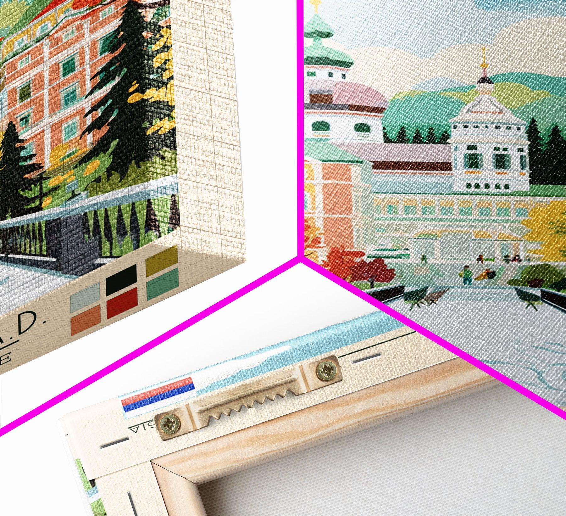 Most of our canvases are made in the USA, with the exception of canvases ordered with the light oak unstained frames, and any large canvases (24x48, 30x60, 16x48 and 20x60) ordered WITH a frame. These are temporarily made in and shipped from Europe, while we try to find a more consistent supplier in the USA.