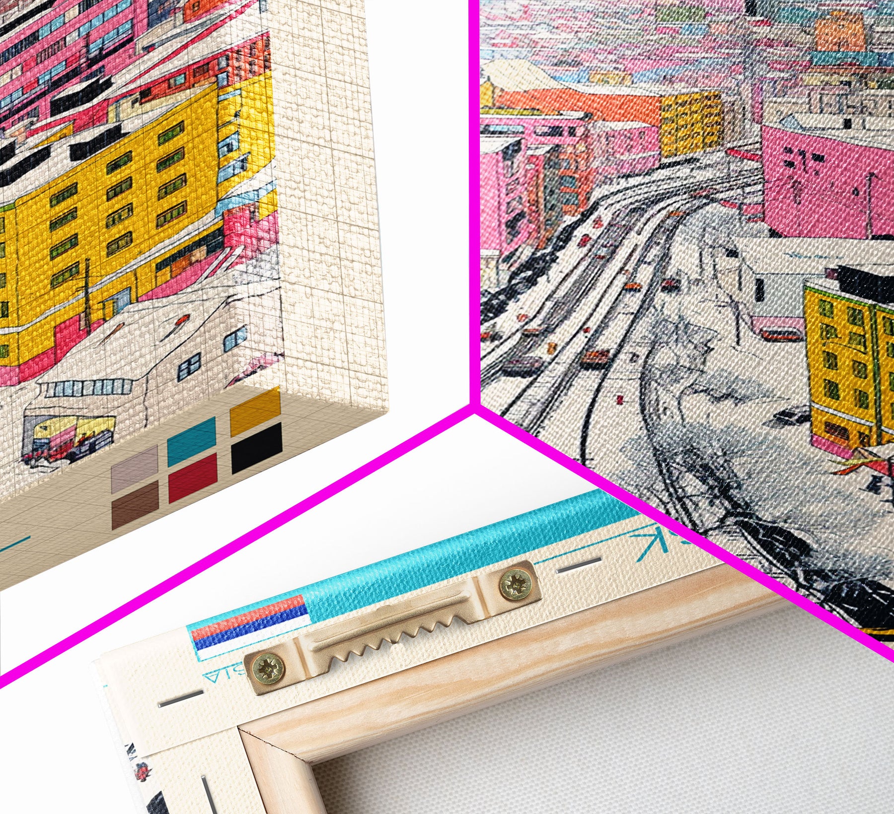 Hello and thank you for taking the time to view our modern high quality giclée artwork! We offer both posters and stretched canvas prints. Our posters are printed on Ultra Matte 60 lb / 230 GSM high quality photo paper, with a thickness of 10 mil. Our canvases are printed on museum grade 350 GSM canvas material with ECO friendly archival grade ink, then hand stretched and stapled over premium, FSC certified and shrink resistant frames. Designed and built to last a lifetime.