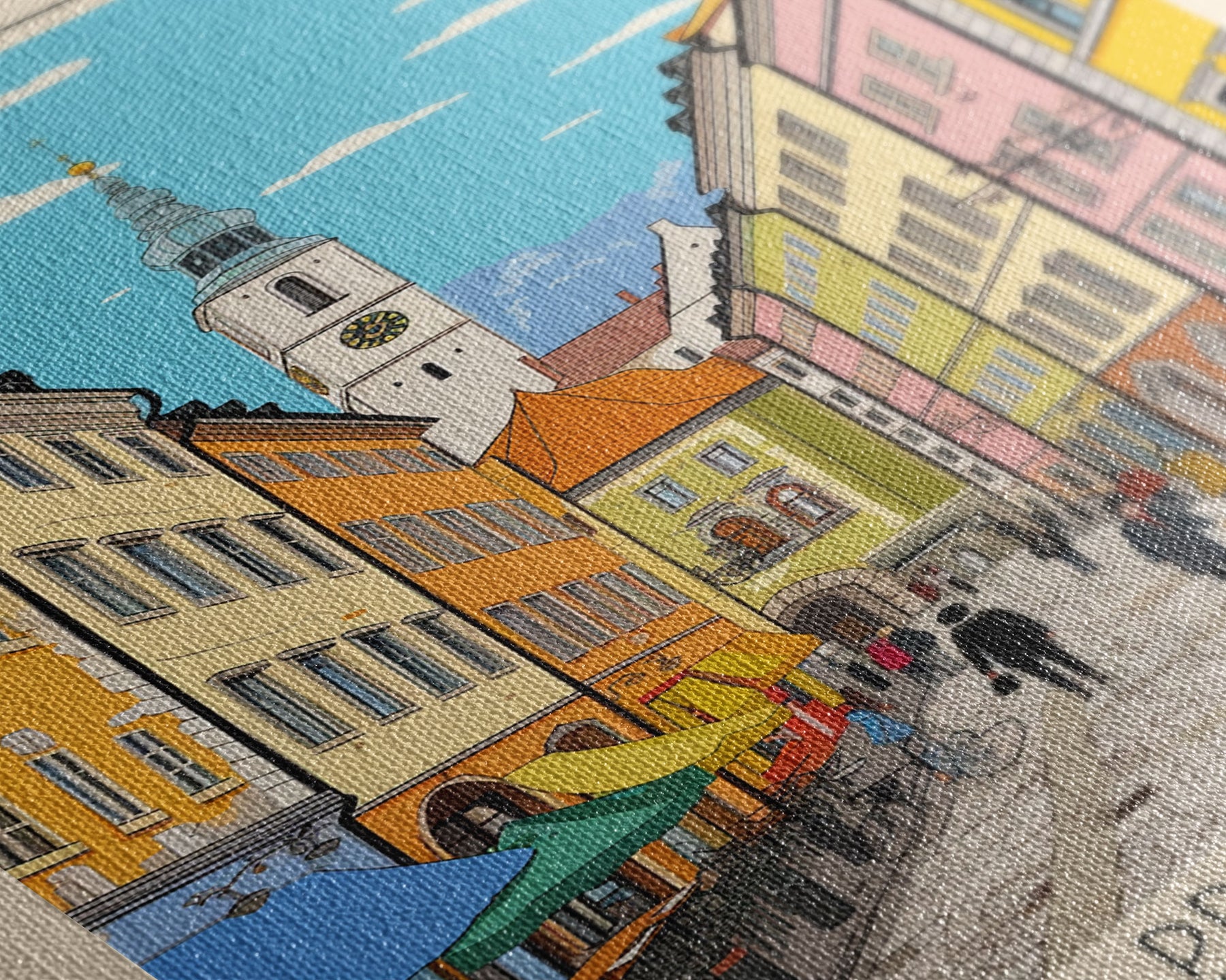 Most of our canvases are made in the USA, with the exception of canvases ordered with the light oak unstained frames, and any large canvases (24x48, 30x60, 16x48 and 20x60) ordered WITH a frame. These are temporarily made in and shipped from Europe, while we try to find a more consistent supplier in the USA.
