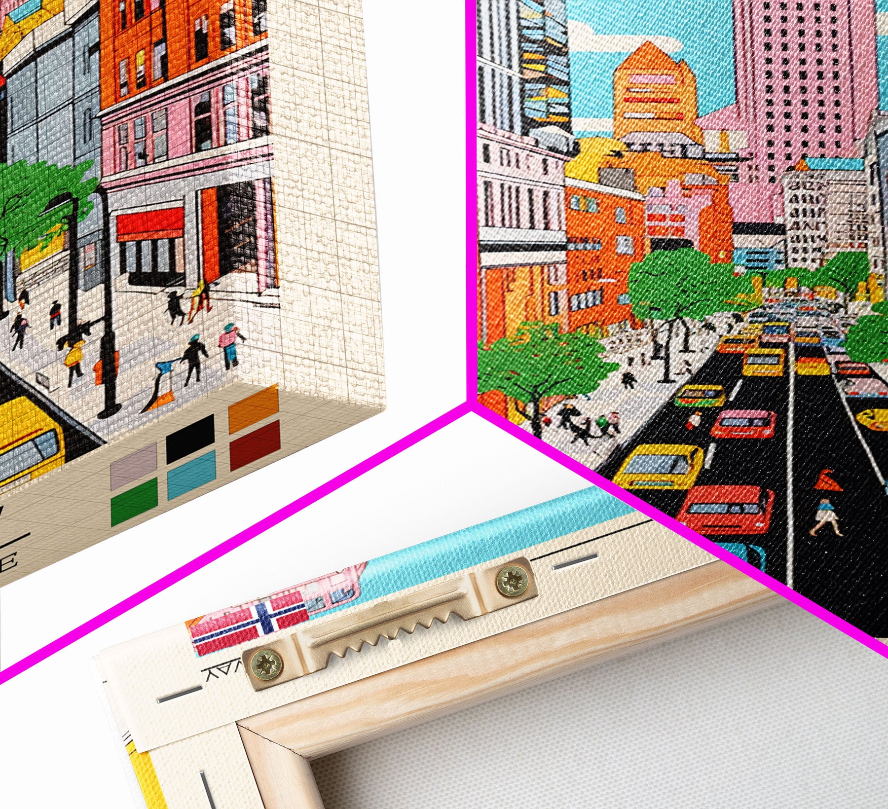 Hello and thank you for taking the time to view our modern high quality giclée artwork! We offer both posters and stretched canvas prints. Our posters are printed on Ultra Matte 60 lb / 230 GSM high quality photo paper, with a thickness of 10 mil. Our canvases are printed on museum grade 350 GSM canvas material with ECO friendly archival grade ink, then hand stretched and stapled over premium, FSC certified and shrink resistant frames. Designed and built to last a lifetime.
