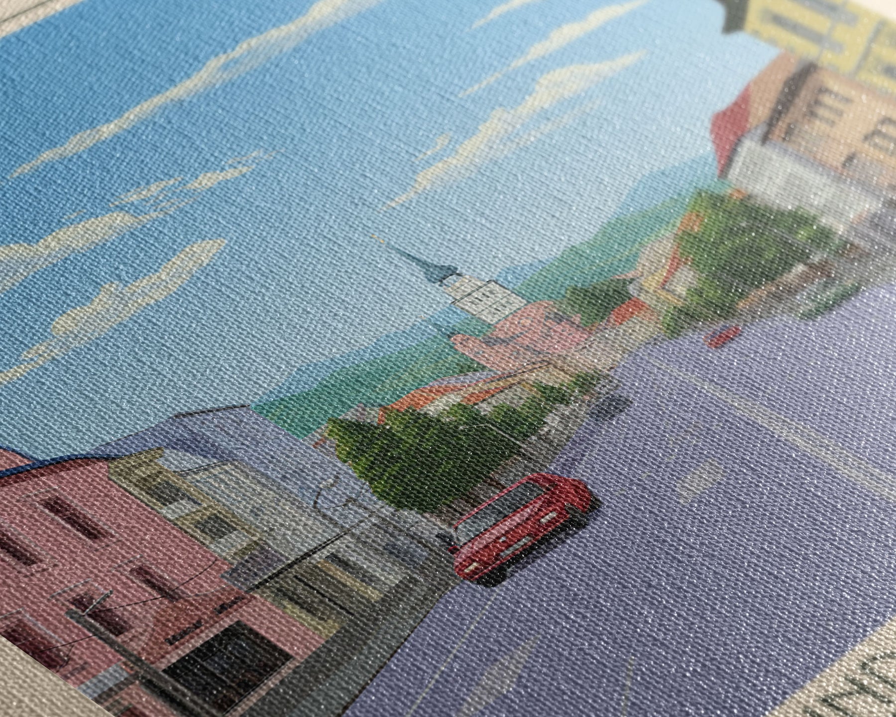 Most of our canvases are made in the USA, with the exception of canvases ordered with the light oak unstained frames, and any large canvases (24x48, 30x60, 16x48 and 20x60) ordered WITH a frame. These are temporarily made in and shipped from Europe, while we try to find a more consistent supplier in the USA.
