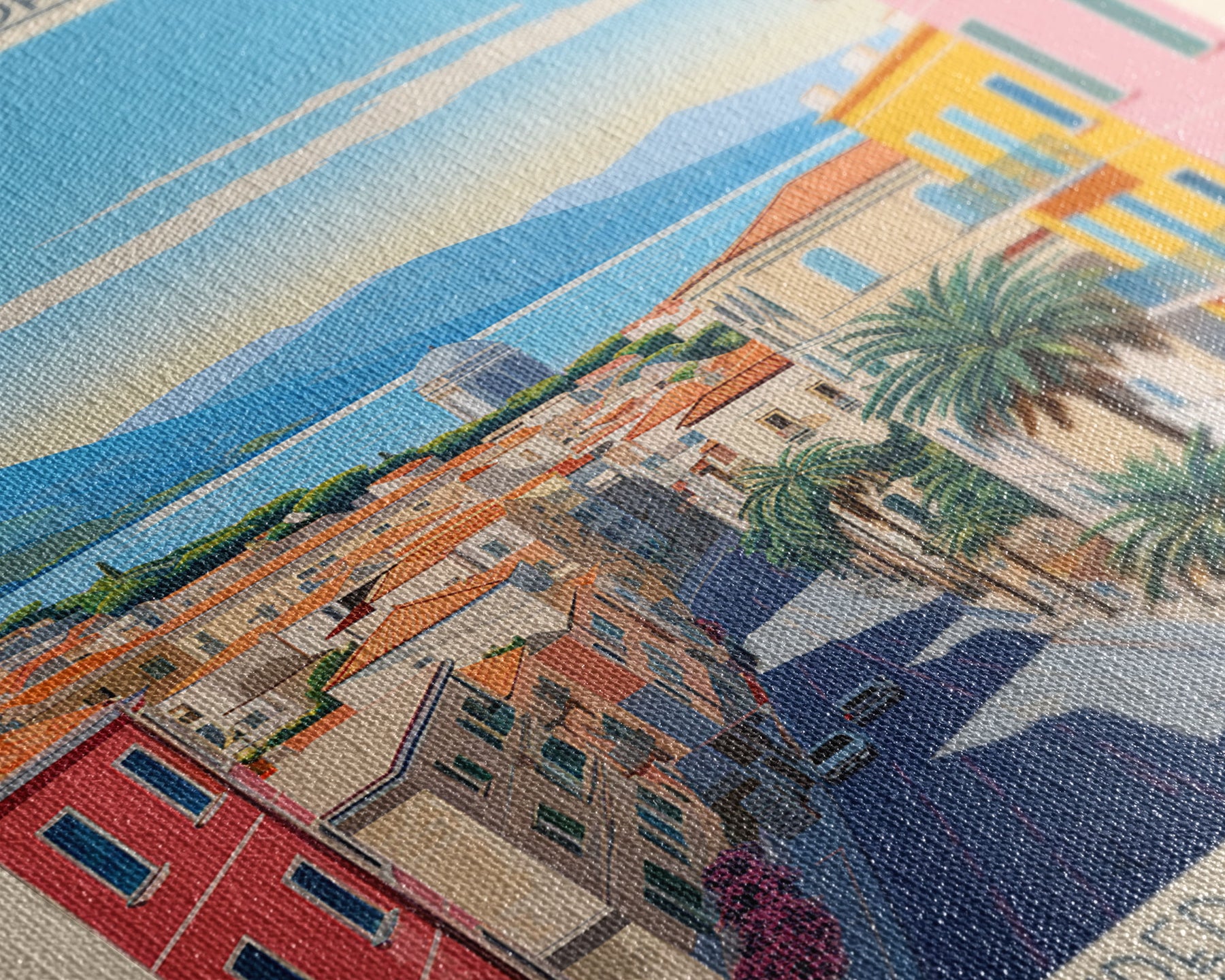 Most of our canvases are made in the USA, with the exception of canvases ordered with the light oak unstained frames, and any large canvases (24x48, 30x60, 16x48 and 20x60) ordered WITH a frame. These are temporarily made in and shipped from Europe, while we try to find a more consistent supplier in the USA.