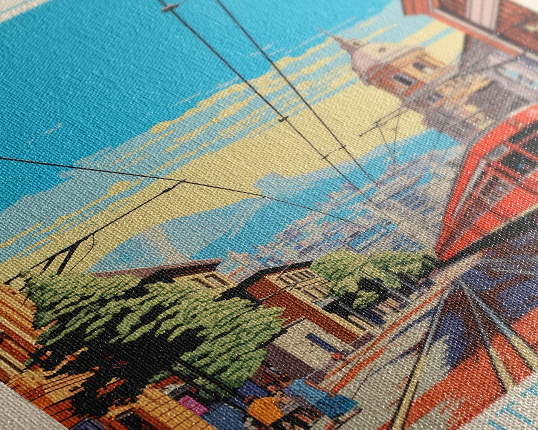 Most of our canvases are made in the USA, with the exception of canvases ordered with the light oak unstained frames, and any large canvases (24x48, 30x60, 16x48 and 20x60) ordered WITH a frame. These are temporarily made in and shipped from Europe, while we try to find a more consistent supplier in the USA.
