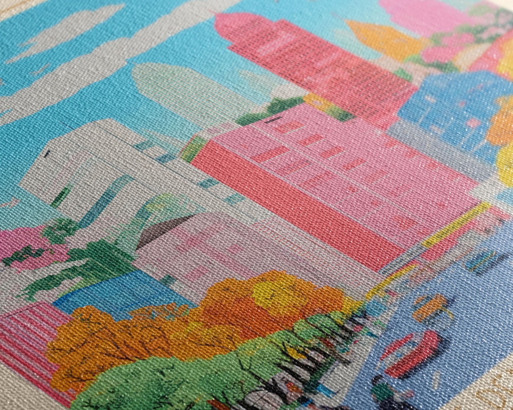 Most of our canvases are made in the USA, with the exception of canvases ordered with the light oak unstained frames, and any large canvases (24x48, 30x60, 16x48 and 20x60) ordered WITH a frame. These are temporarily made in and shipped from Europe, while we try to find a more consistent supplier in the USA.