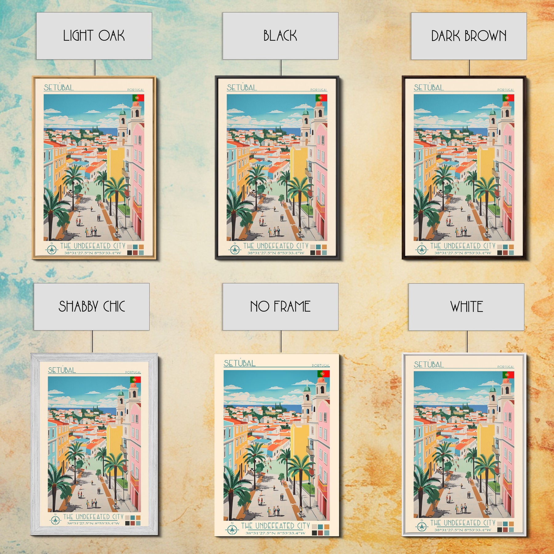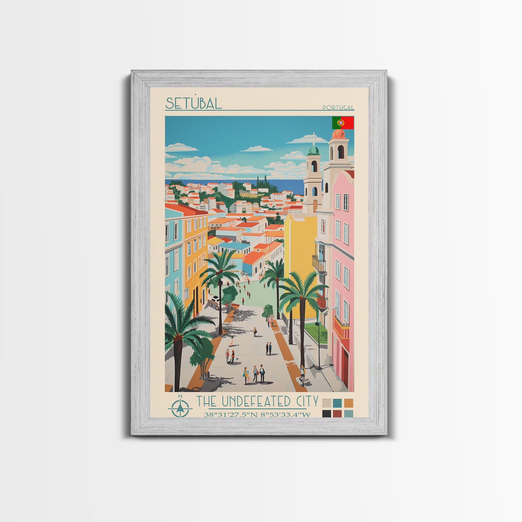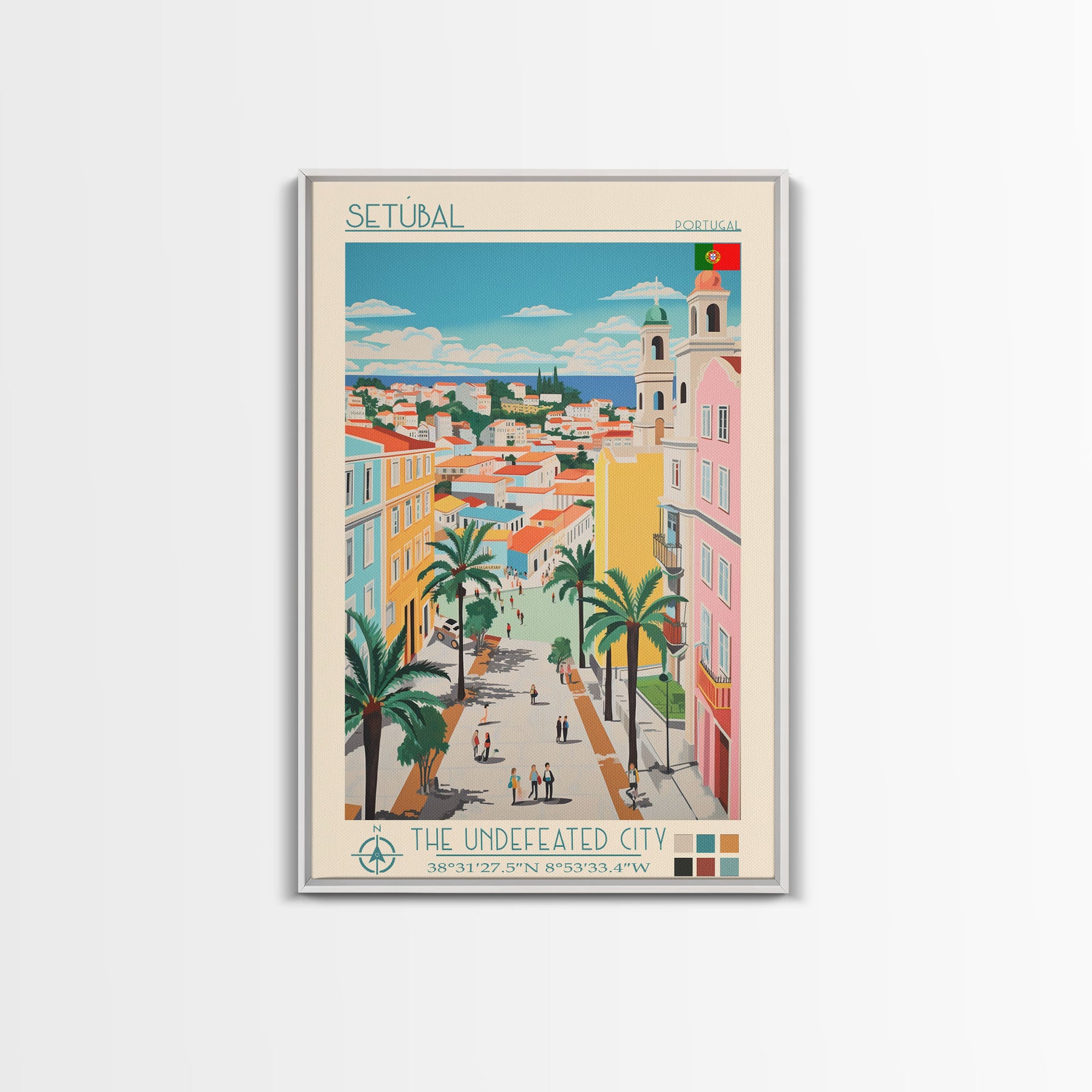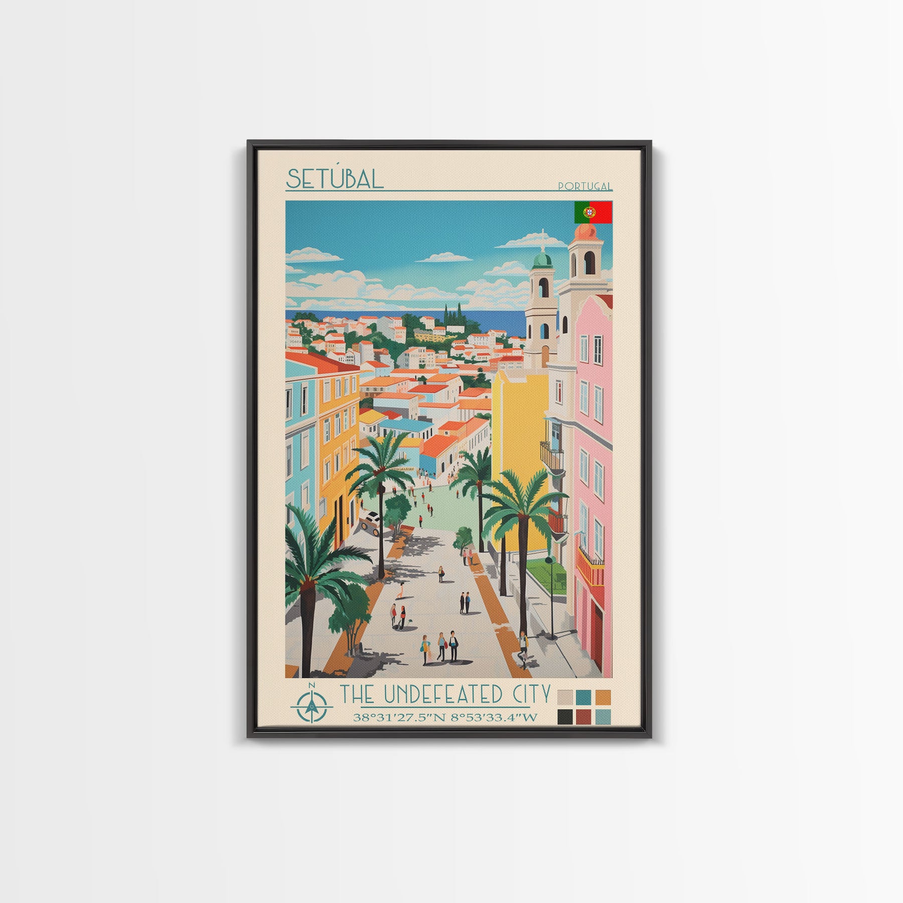Setúbal Portugal Travel Poster Framed Canvas Print, Midcentury Modern Art, Pop Art Wall Decor, Scenic Wall Art, Office Decoration