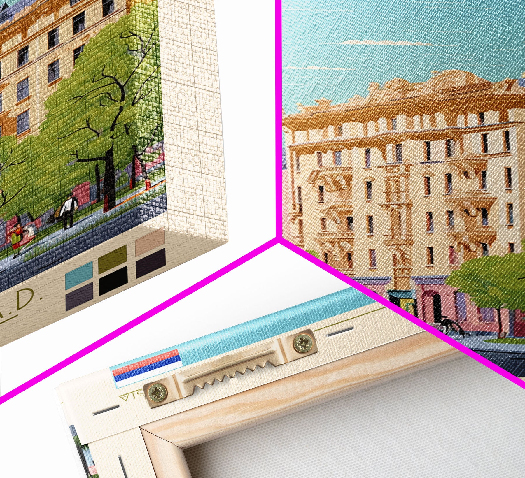 Hello and thank you for taking the time to view our modern high quality giclée artwork! We offer both posters and stretched canvas prints. Our posters are printed on Ultra Matte 60 lb / 230 GSM high quality photo paper, with a thickness of 10 mil. Our canvases are printed on museum grade 350 GSM canvas material with ECO friendly archival grade ink, then hand stretched and stapled over premium, FSC certified and shrink resistant frames. Designed and built to last a lifetime.