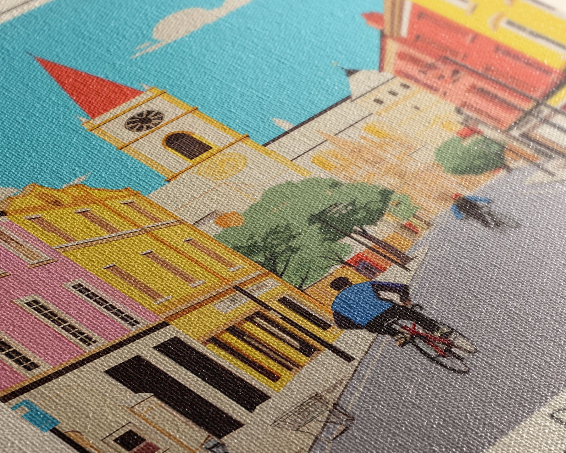 Most of our canvases are made in the USA, with the exception of canvases ordered with the light oak unstained frames, and any large canvases (24x48, 30x60, 16x48 and 20x60) ordered WITH a frame. These are temporarily made in and shipped from Europe, while we try to find a more consistent supplier in the USA.
