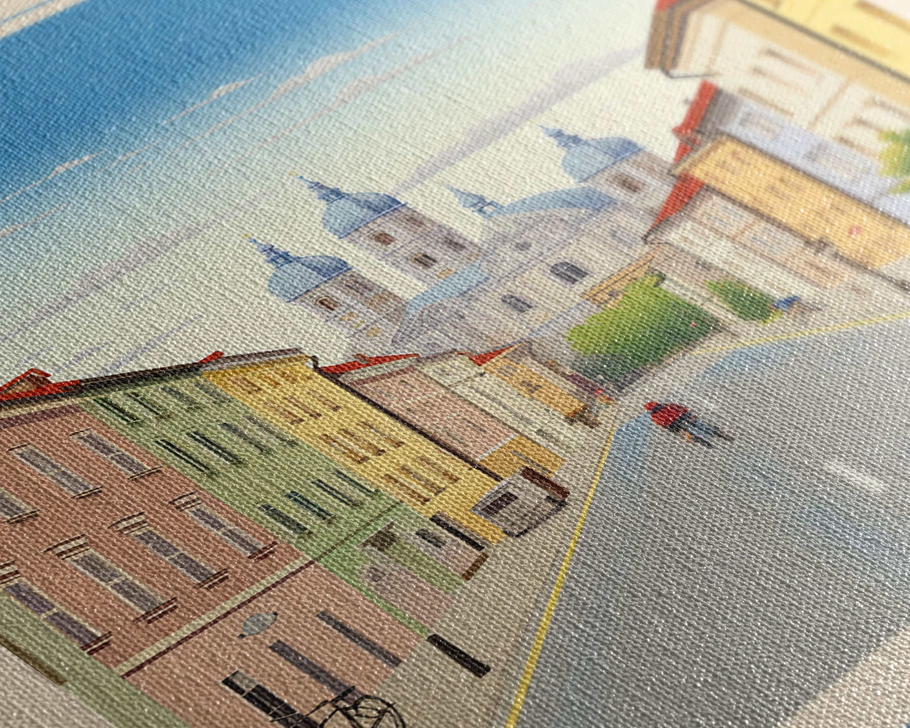 Most of our canvases are made in the USA, with the exception of canvases ordered with the light oak unstained frames, and any large canvases (24x48, 30x60, 16x48 and 20x60) ordered WITH a frame. These are temporarily made in and shipped from Europe, while we try to find a more consistent supplier in the USA.