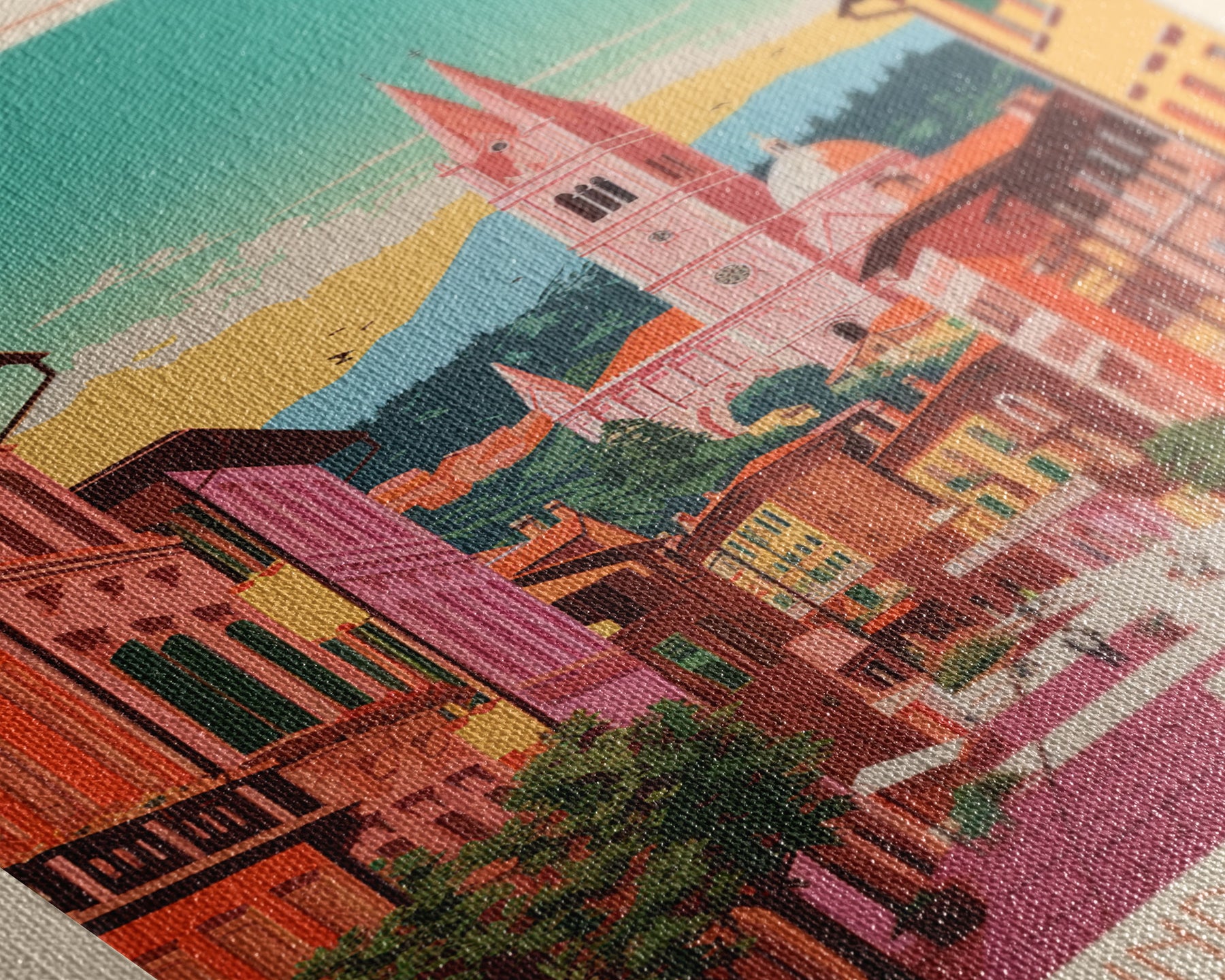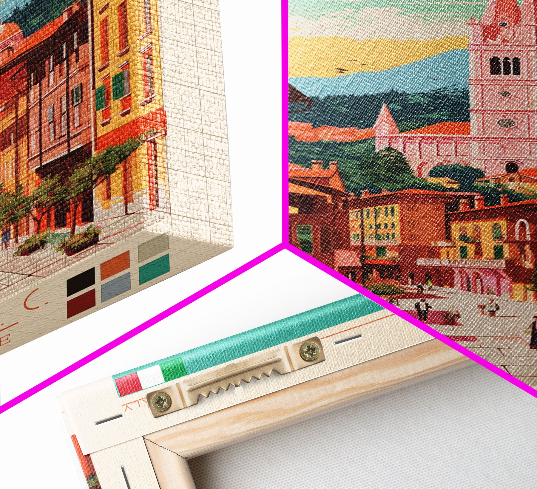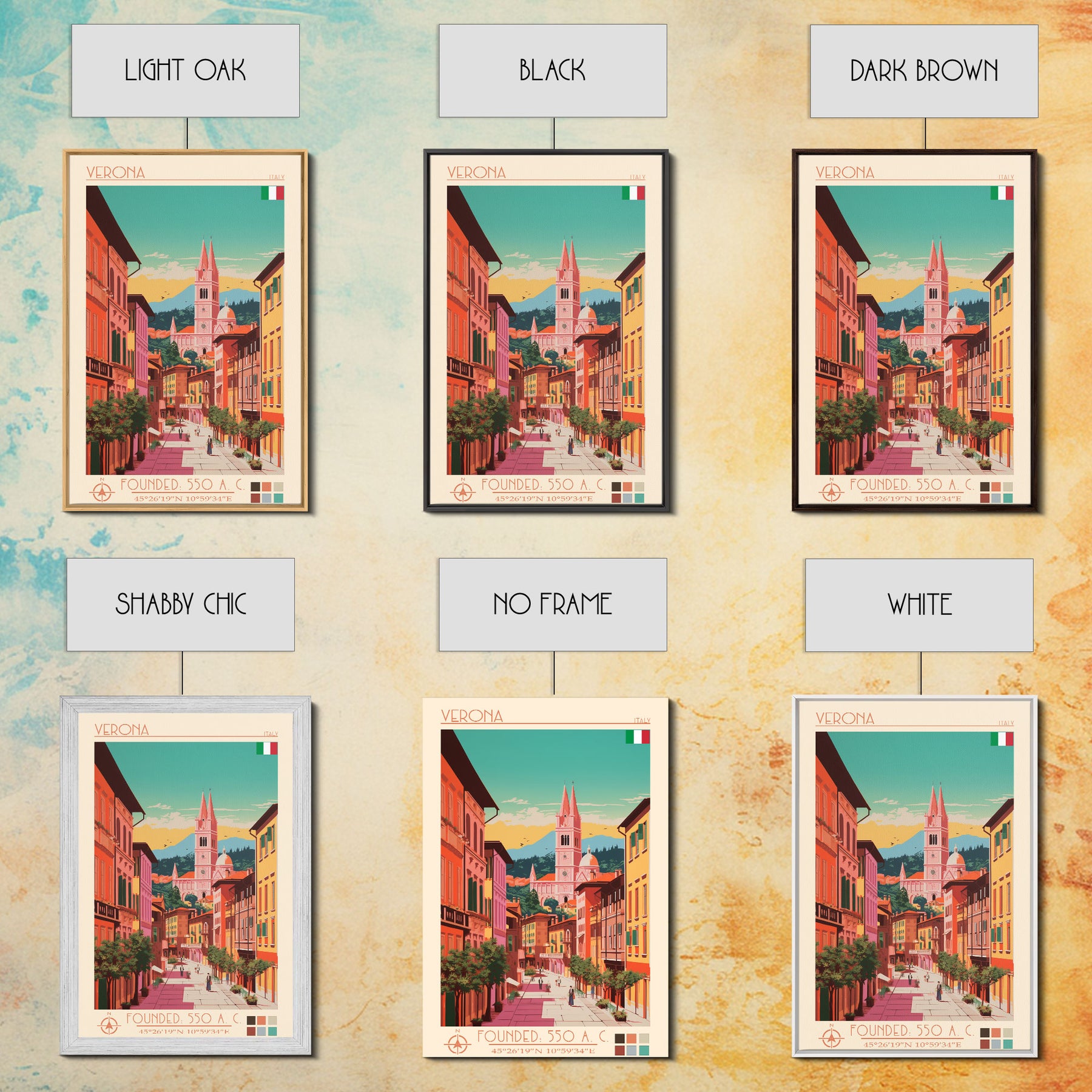 Verona Italy Travel Poster Framed Canvas Print, Midcentury Modern Art, Pop Art Wall Decor, Living Room Art, Home Decoration