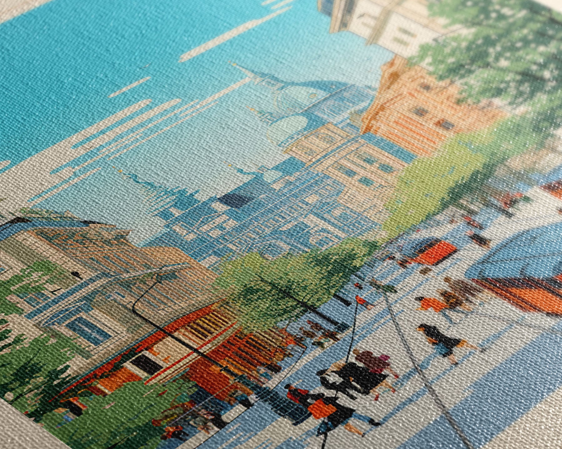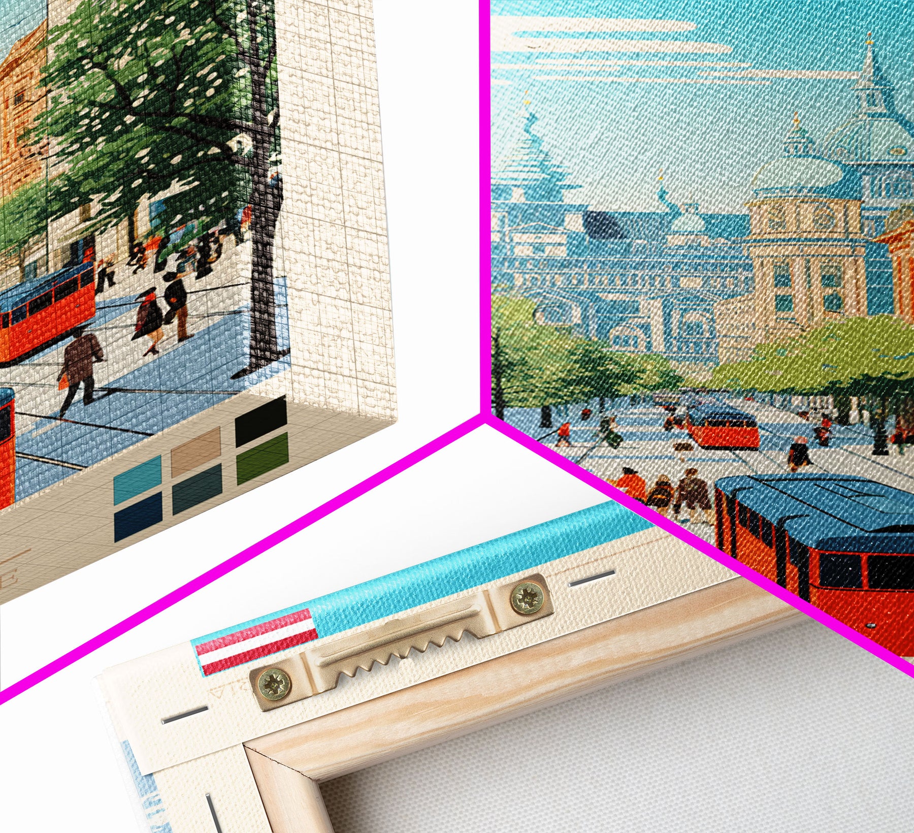 Vienna Austria Travel Poster Framed Canvas Print, Midcentury Modern Art, Pop Art Wall Decor, Living Room Art, Scenic Wall Art