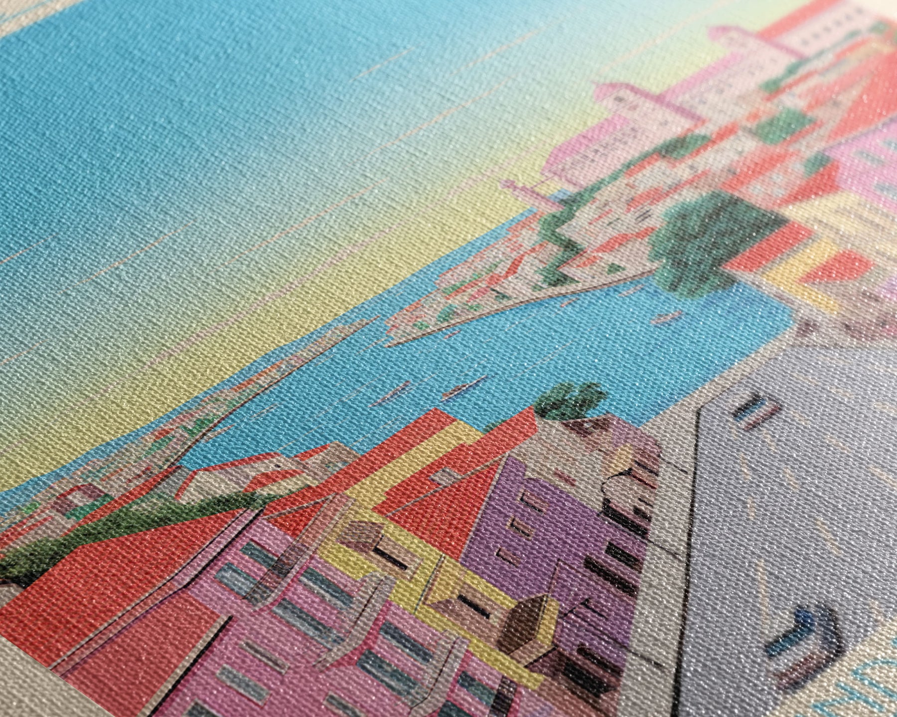 Hello and thank you for taking the time to view our modern high quality giclée artwork! We offer both posters and stretched canvas prints. Our posters are printed on Ultra Matte 60 lb / 230 GSM high quality photo paper, with a thickness of 10 mil. Our canvases are printed on museum grade 350 GSM canvas material with ECO friendly archival grade ink, then hand stretched and stapled over premium, FSC certified and shrink resistant frames. Designed and built to last a lifetime.