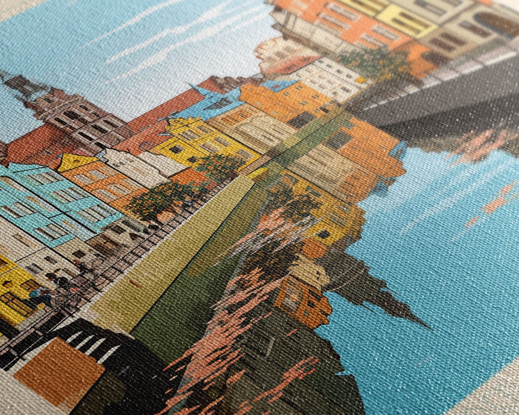 Most of our canvases are made in the USA, with the exception of canvases ordered with the light oak unstained frames, and any large canvases (24x48, 30x60, 16x48 and 20x60) ordered WITH a frame. These are temporarily made in and shipped from Europe, while we try to find a more consistent supplier in the USA.