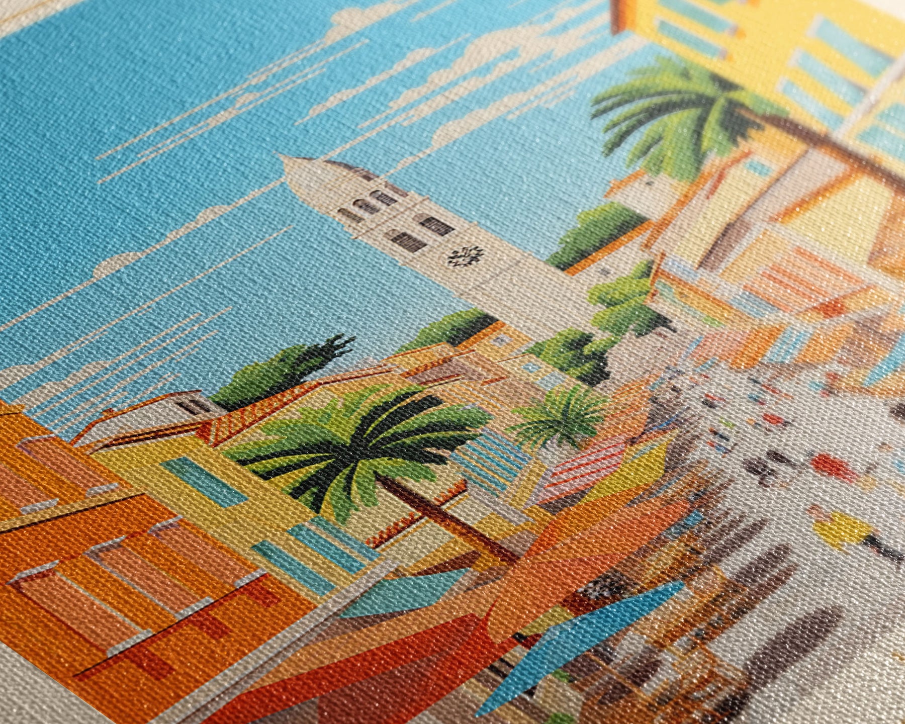 Most of our canvases are made in the USA, with the exception of canvases ordered with the light oak unstained frames, and any large canvases (24x48, 30x60, 16x48 and 20x60) ordered WITH a frame. These are temporarily made in and shipped from Europe, while we try to find a more consistent supplier in the USA.