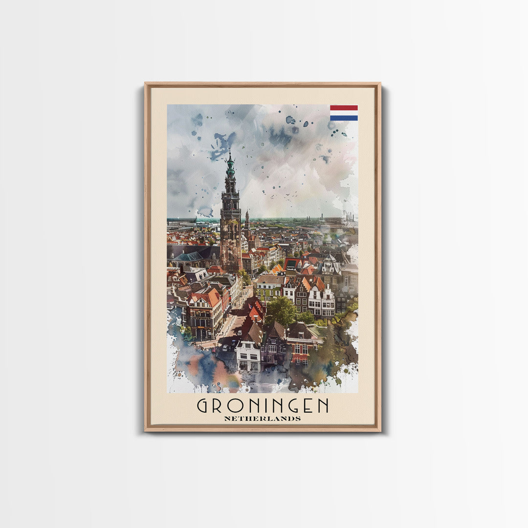 Groningen Netherlands Cityscape Art, Framed Canvas Print, Living Room Wall Art, Travel Poster, Home Decoration, Dutch Wall Art