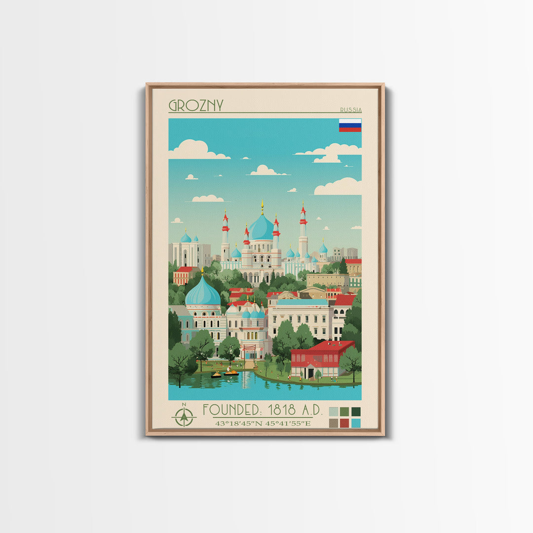 Grozny Russia Travel Poster Framed Canvas Print, Midcentury Modern Art, Pop Art Wall Decor, Scenic Wall Art, Living Room Decoration, Office Art