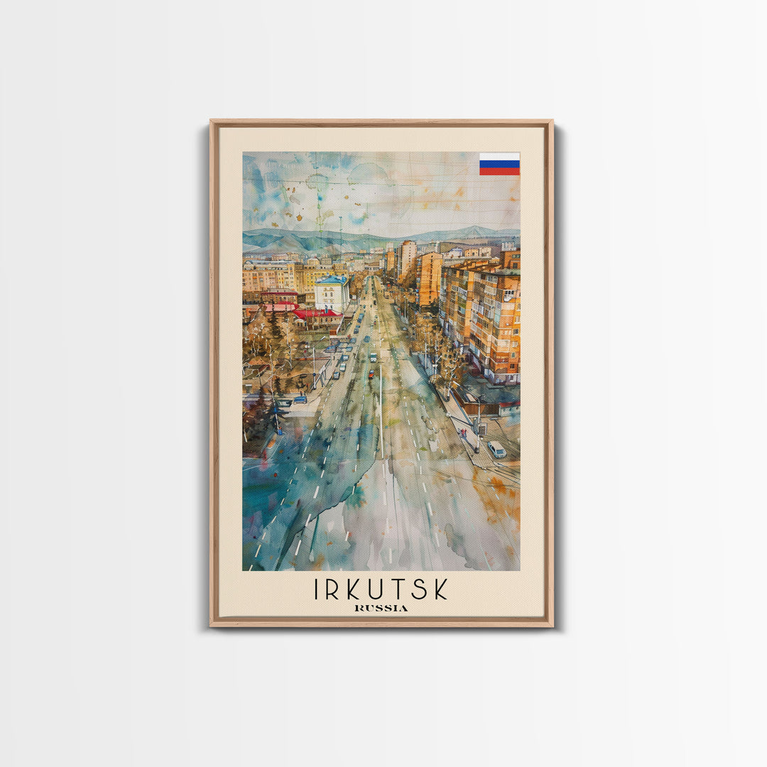 Irkutsk Russia Travel Poster Framed Canvas Print, Midcentury Modern Art, Pop Art Wall Decor, Scenic Bedroom Art, Office Decoration