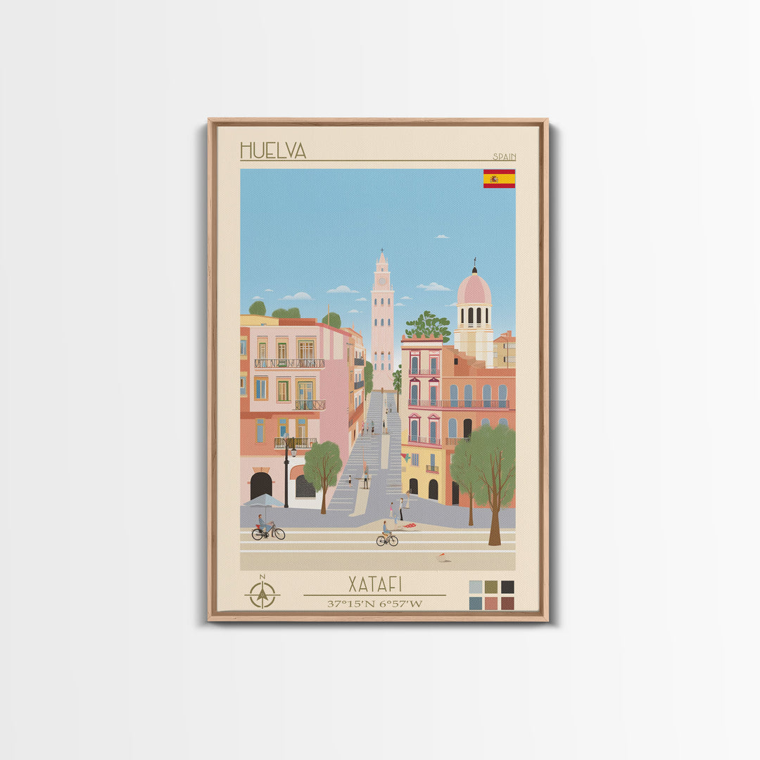 Huelva Spain Travel Poster Framed Canvas Print, Midcentury Modern Art, Pop Art Wall Decor, Scenic Wall Art, Living Room Decoration, Office Art