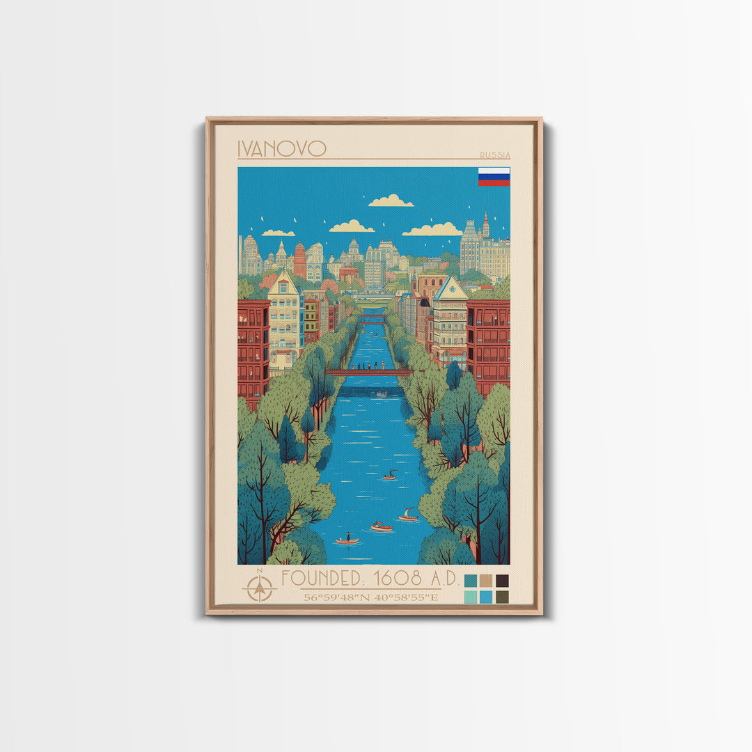 Ivanovo Russia Travel Poster Framed Canvas Print, Midcentury Modern Art, Pop Art Wall Decor, Home Decor, Vacation Gift, Office Art