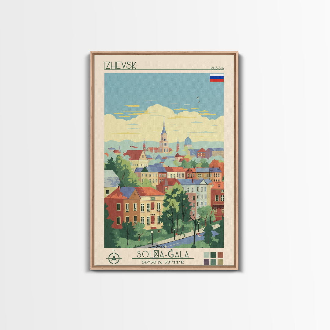 Izhevsk Russia Travel Poster Framed Canvas Print, Midcentury Modern Art, Pop Art Wall Decor, Scenic Living Room Art, Bedroom Gift