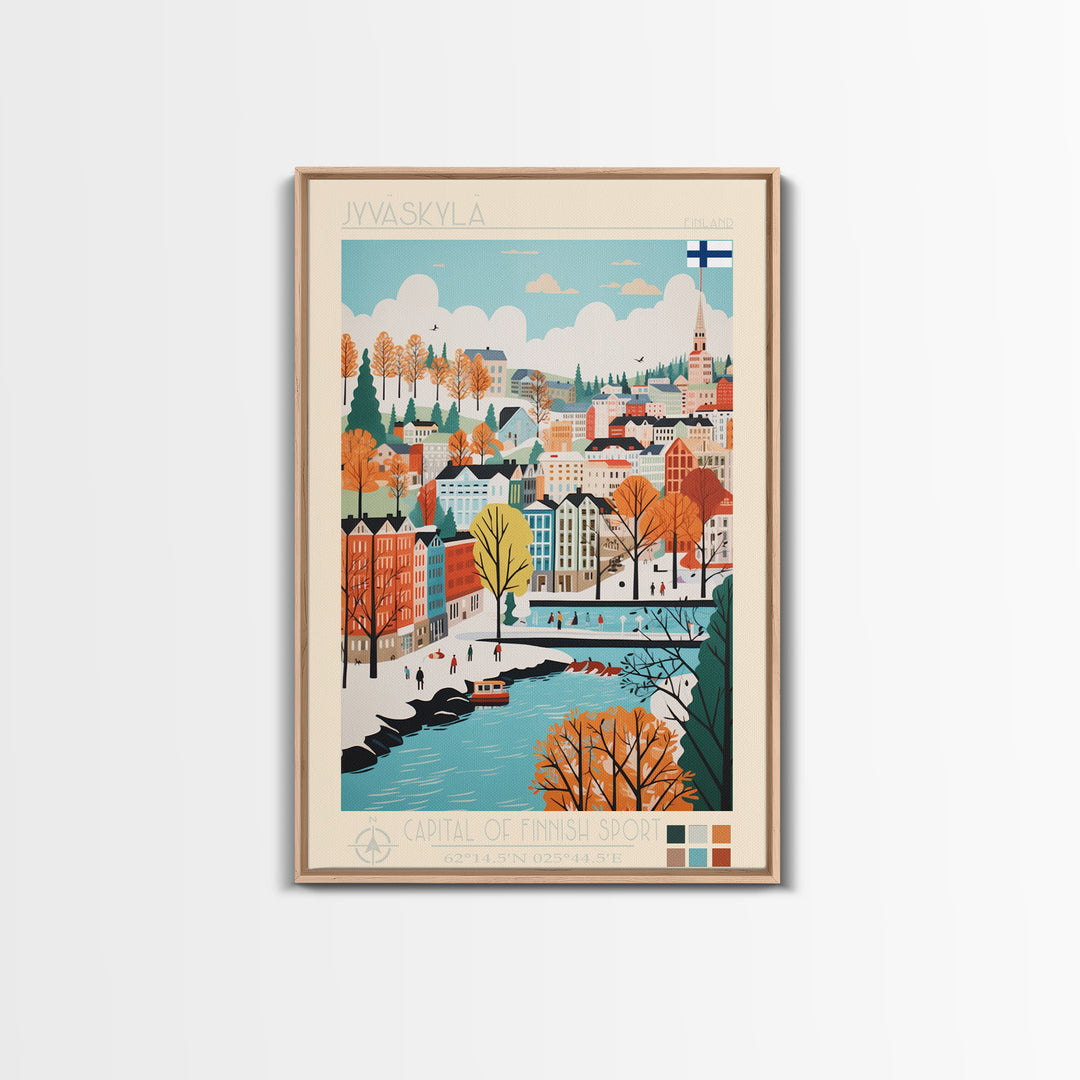 Jyväskylä Finland Travel Poster Framed Canvas Print, Vintage Style, Pop Art Home Decor, Scenic Wall Art, Bedroom Decoration, Office Gift