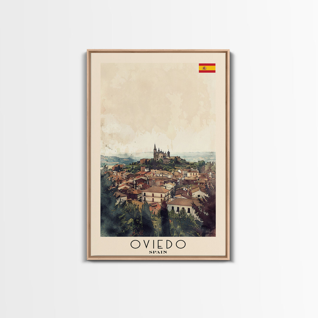 Oviedo Spain Travel Poster Framed Canvas Print, Watercolor Painting, Scenic Wall Art, Home Decor, Spanish Cityscape, Classic Art