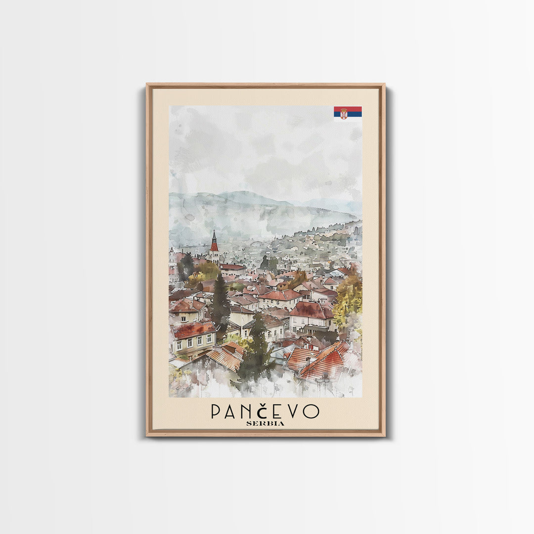 Panevo Serbia Travel Poster Framed Canvas Print, Watercolor Painting, Scenic Wall Art, Home Decor, Serbian Landscape, Modern Decor