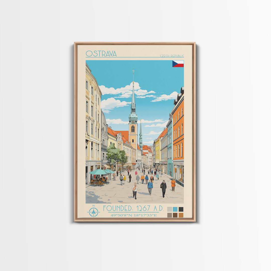 Ostrava Czech Republic Travel Poster Framed Canvas Print, Midcentury Modern Art, Pop Art Wall Decor, Home Decor, Vacation Gift, Bedroom Art