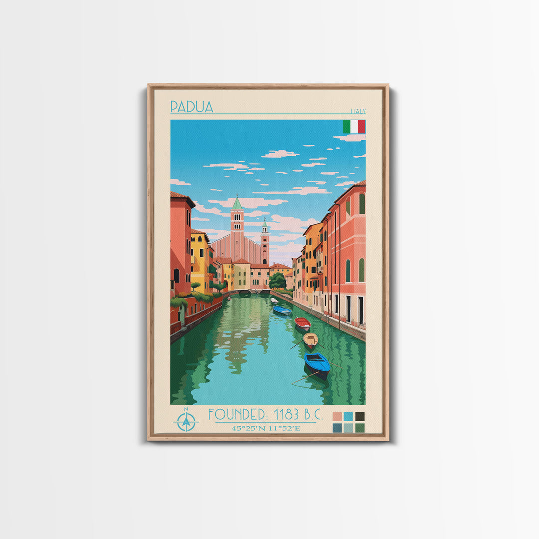 Padua Italy Travel Poster Framed Canvas Print, Midcentury Modern Art, Pop Art Wall Decor, Scenic Bedroom Art, Office Decoration