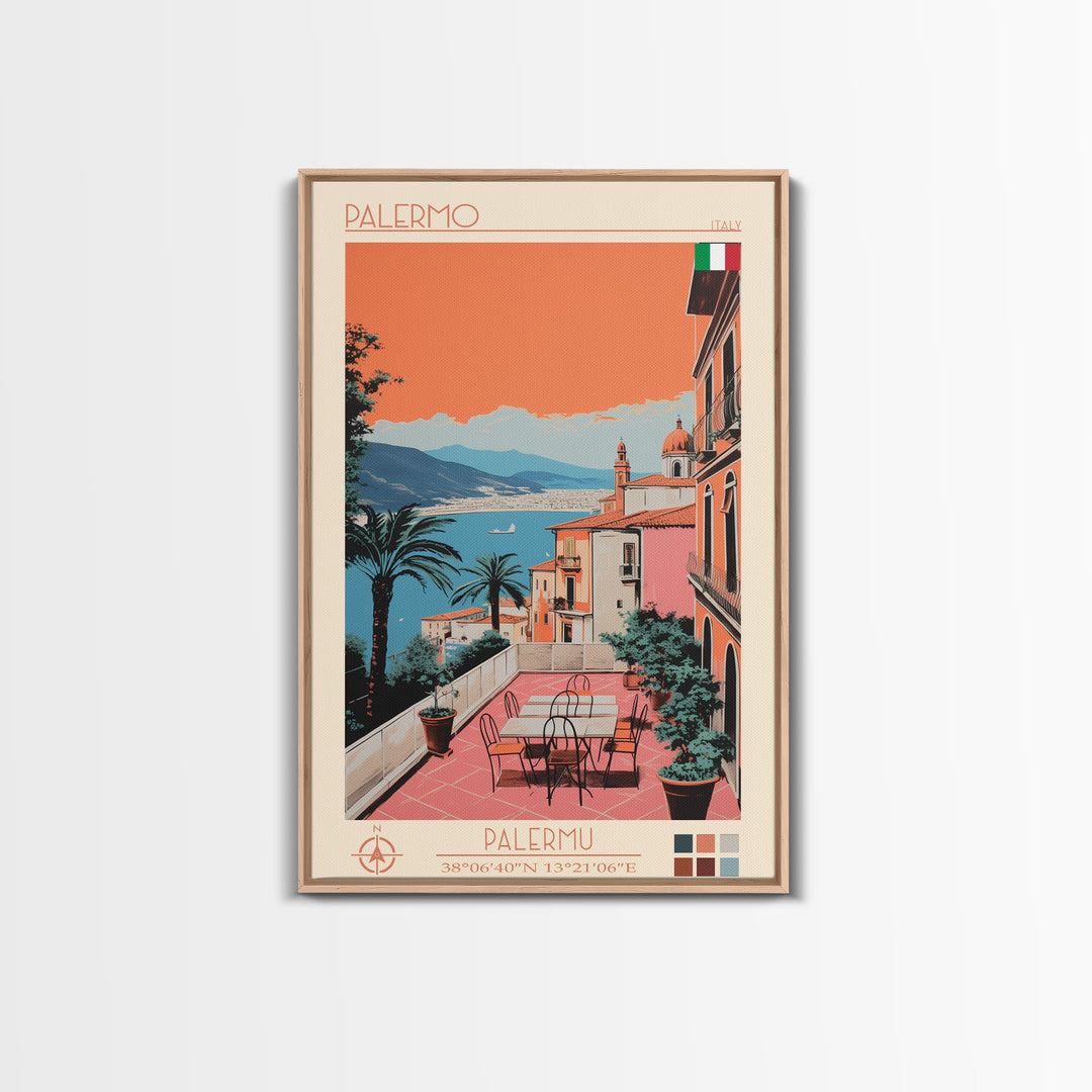 Palermo Italy Travel Poster Framed Canvas Print, Midcentury Modern Art, Pop Art Wall Decor, Scenic Living Room Art, Bedroom Decor