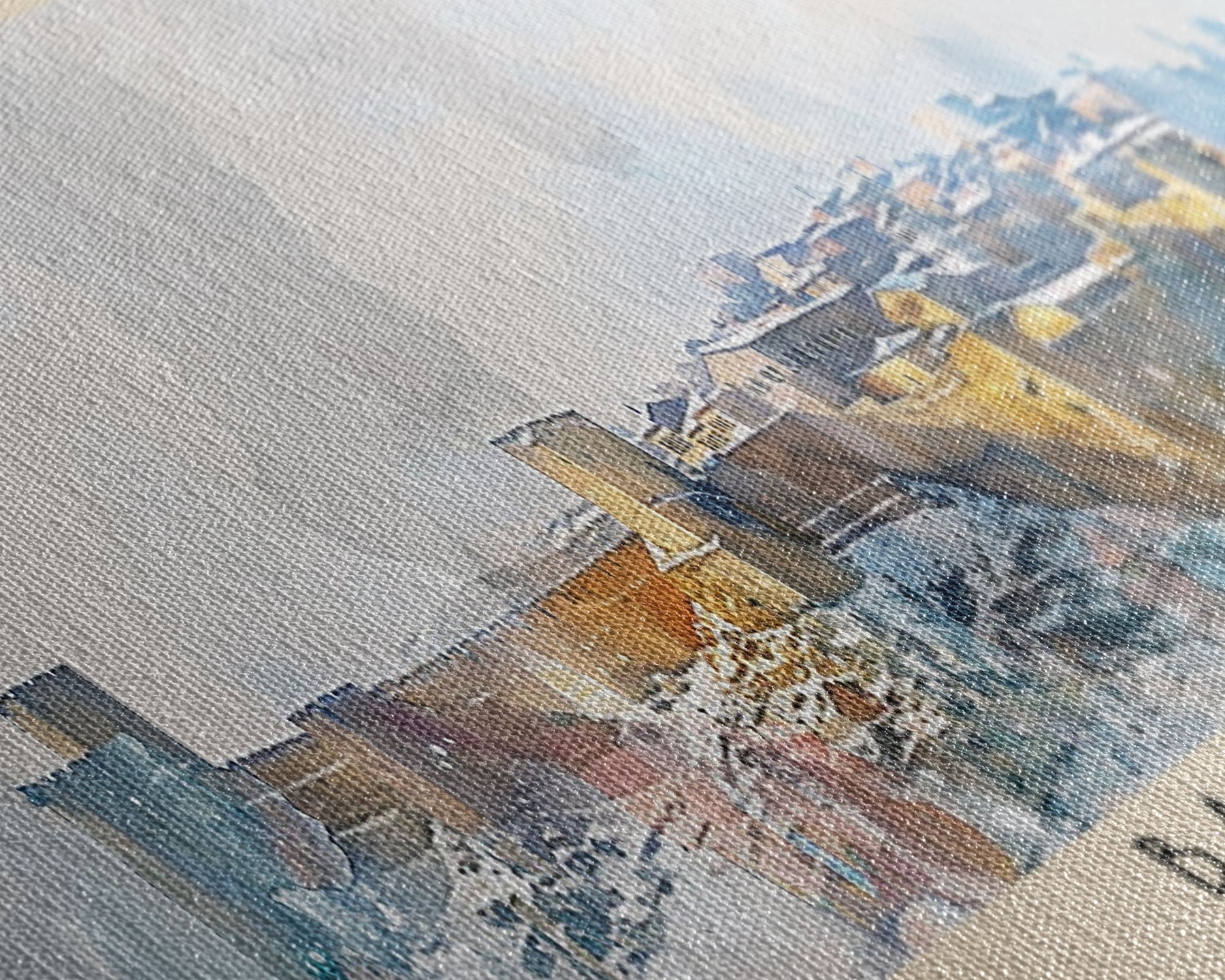 Most of our canvases are made in the USA, with the exception of canvases ordered with the light oak unstained frames, and any large canvases (24x48, 30x60, 16x48 and 20x60) ordered WITH a frame. These are temporarily made in and shipped from Europe, while we try to find a more consistent supplier in the USA.