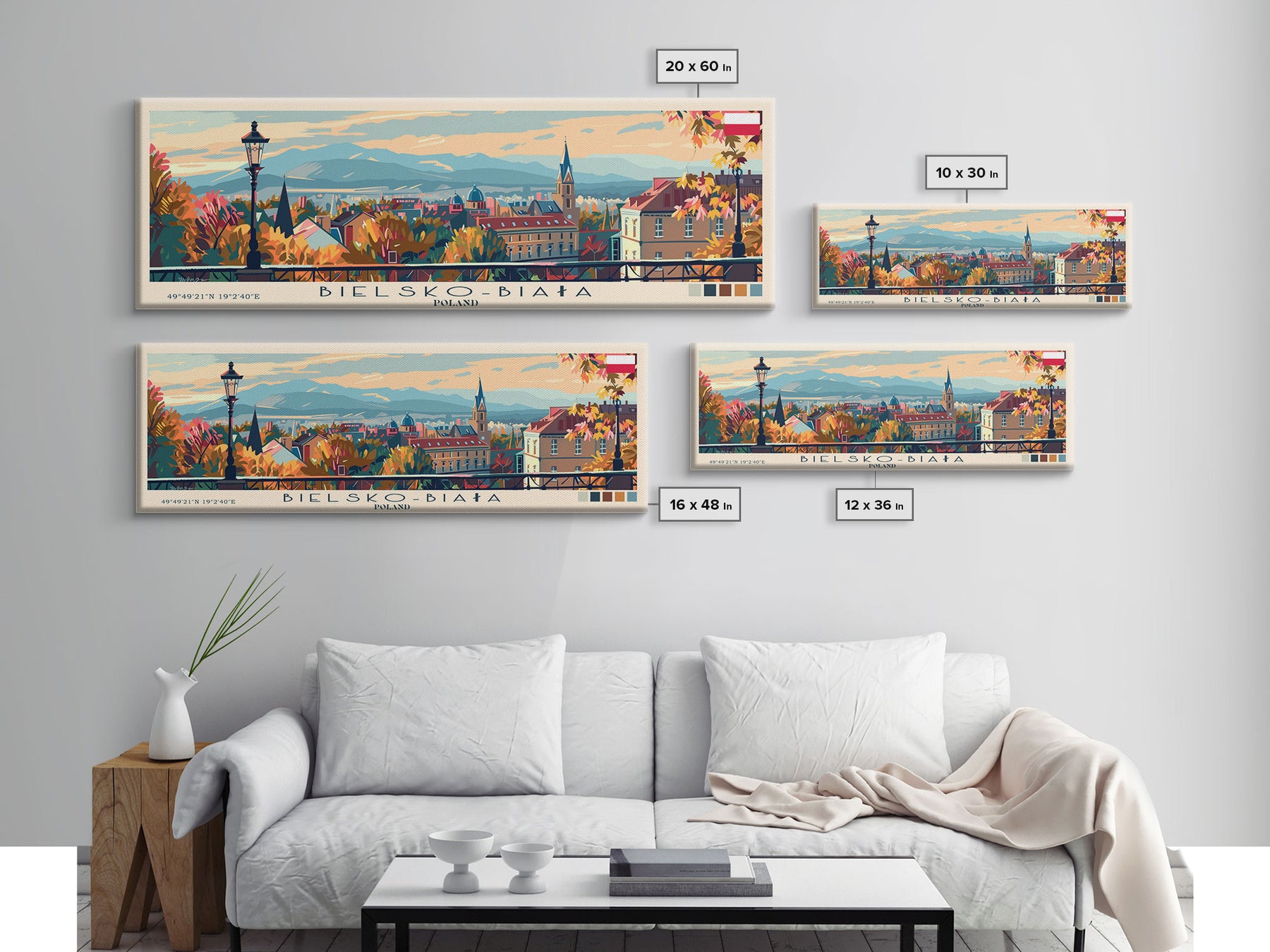 Bielsko Biala Poland Travel Art, City Art, Framed Canvas Print or Metal Wall Art, Europe Travel Poster, Panoramic Wall Art, Extra Wide Wall Art
