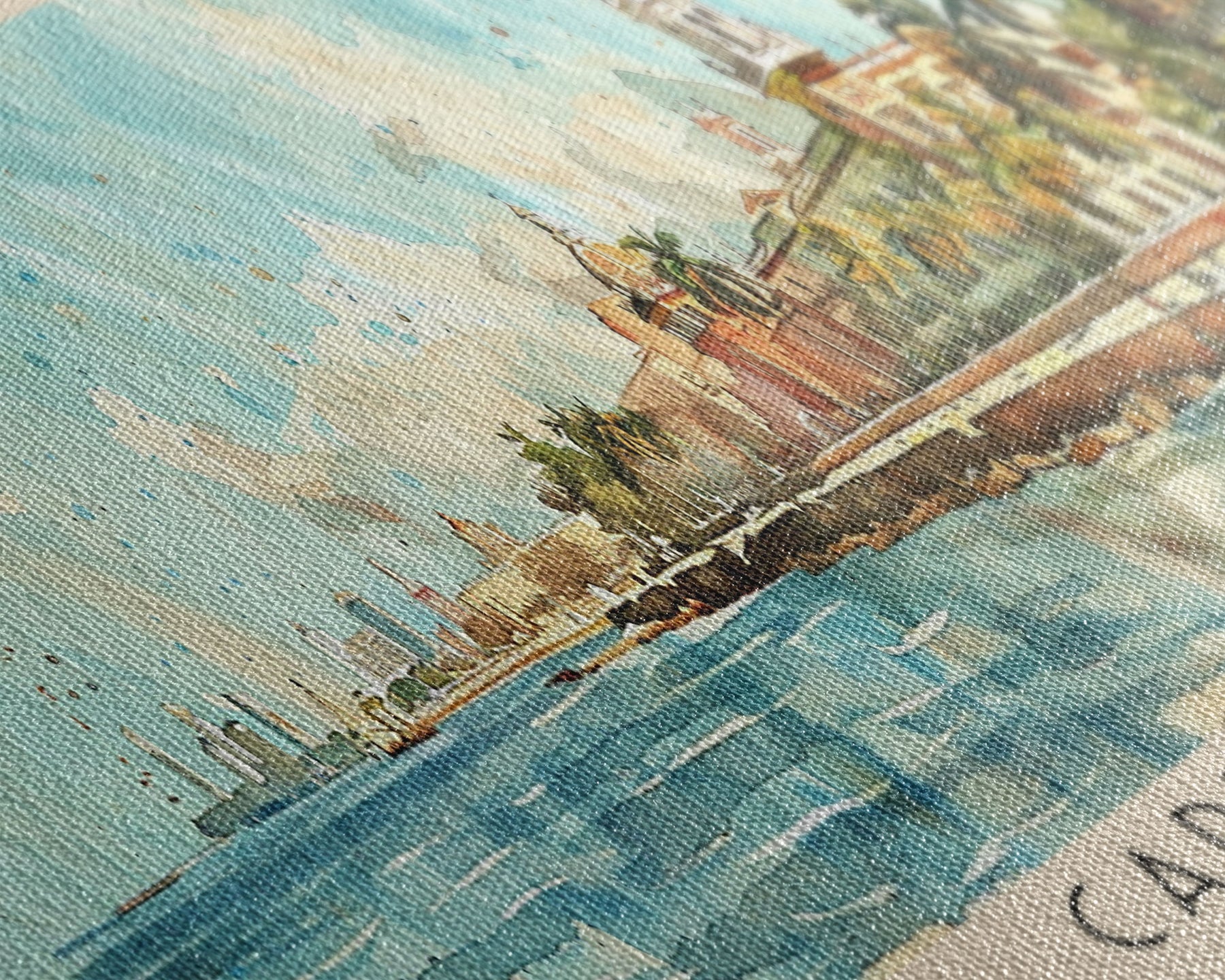 Most of our canvases are made in the USA, with the exception of canvases ordered with the light oak unstained frames, and any large canvases (24x48, 30x60, 16x48 and 20x60) ordered WITH a frame. These are temporarily made in and shipped from Europe, while we try to find a more consistent supplier in the USA.