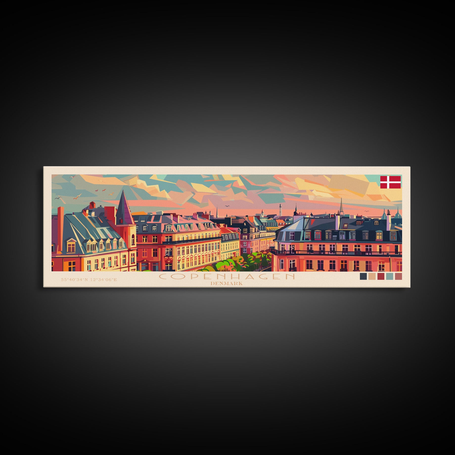 Copenhagen Denmark Travel Print Wall Art, Panoramic City Art, Travel Art, Wall Decor, Vacation Gift, Framed Canvas Print Or Metal Art