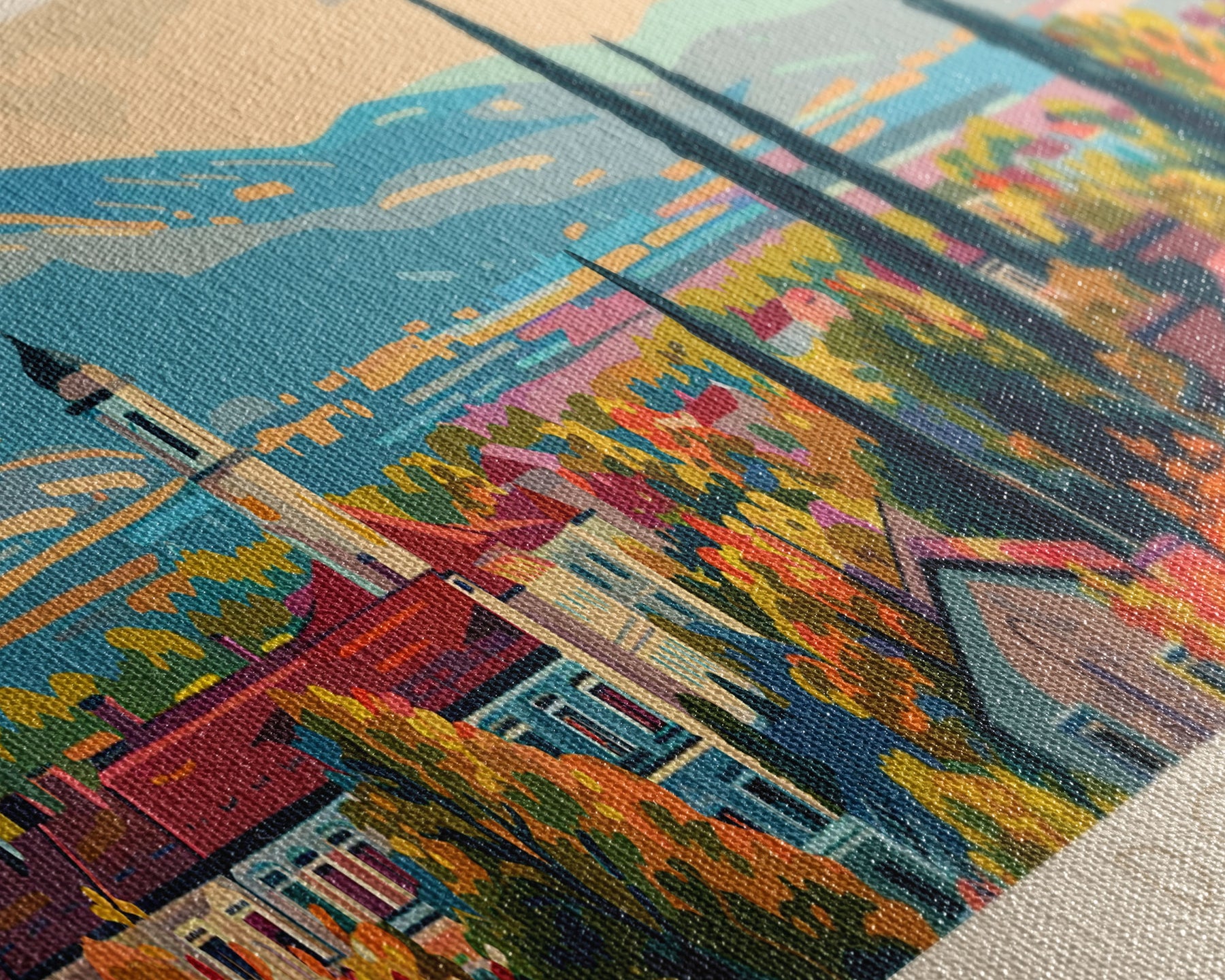 Most of our canvases are made in the USA, with the exception of canvases ordered with the light oak unstained frames, and any large canvases (24x48, 30x60, 16x48 and 20x60) ordered WITH a frame. These are temporarily made in and shipped from Europe, while we try to find a more consistent supplier in the USA.