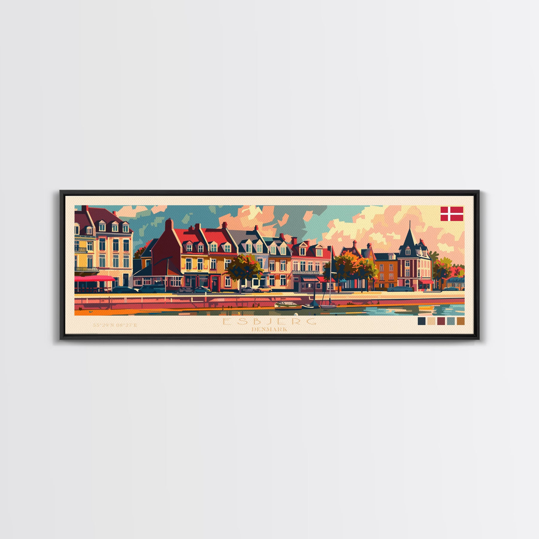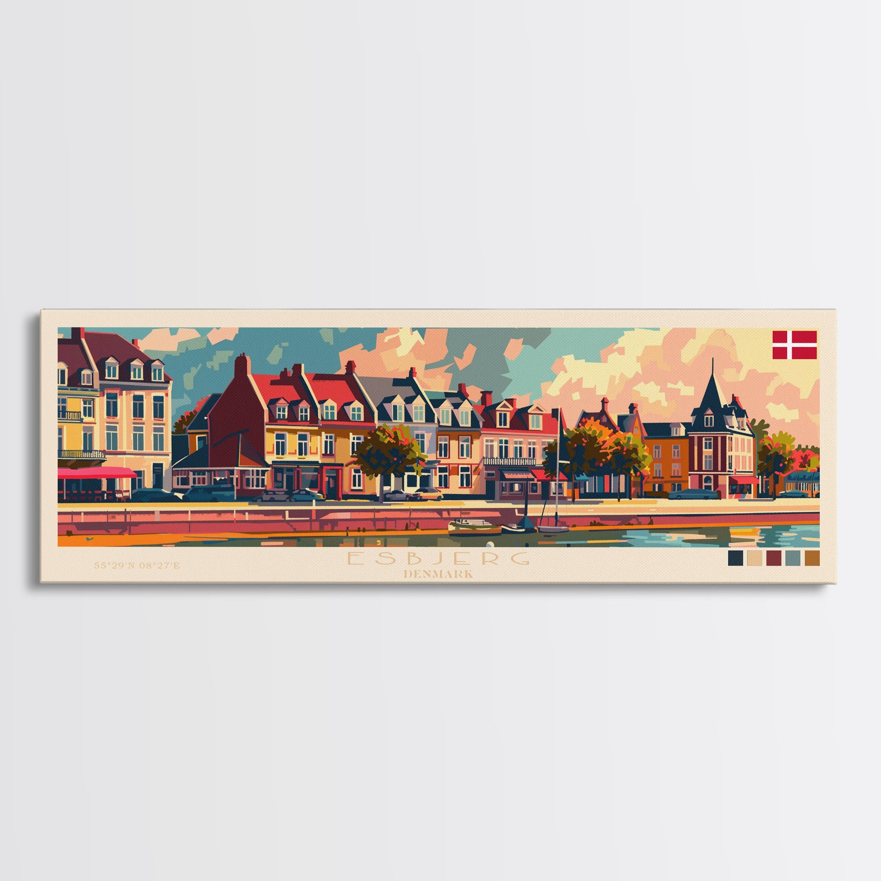 Esbjerg Denmark Travel Art, City Art, Framed Canvas Print or Metal Wall Art, Europe Travel Poster, Panoramic Wall Art, Extra Wide Wall Art