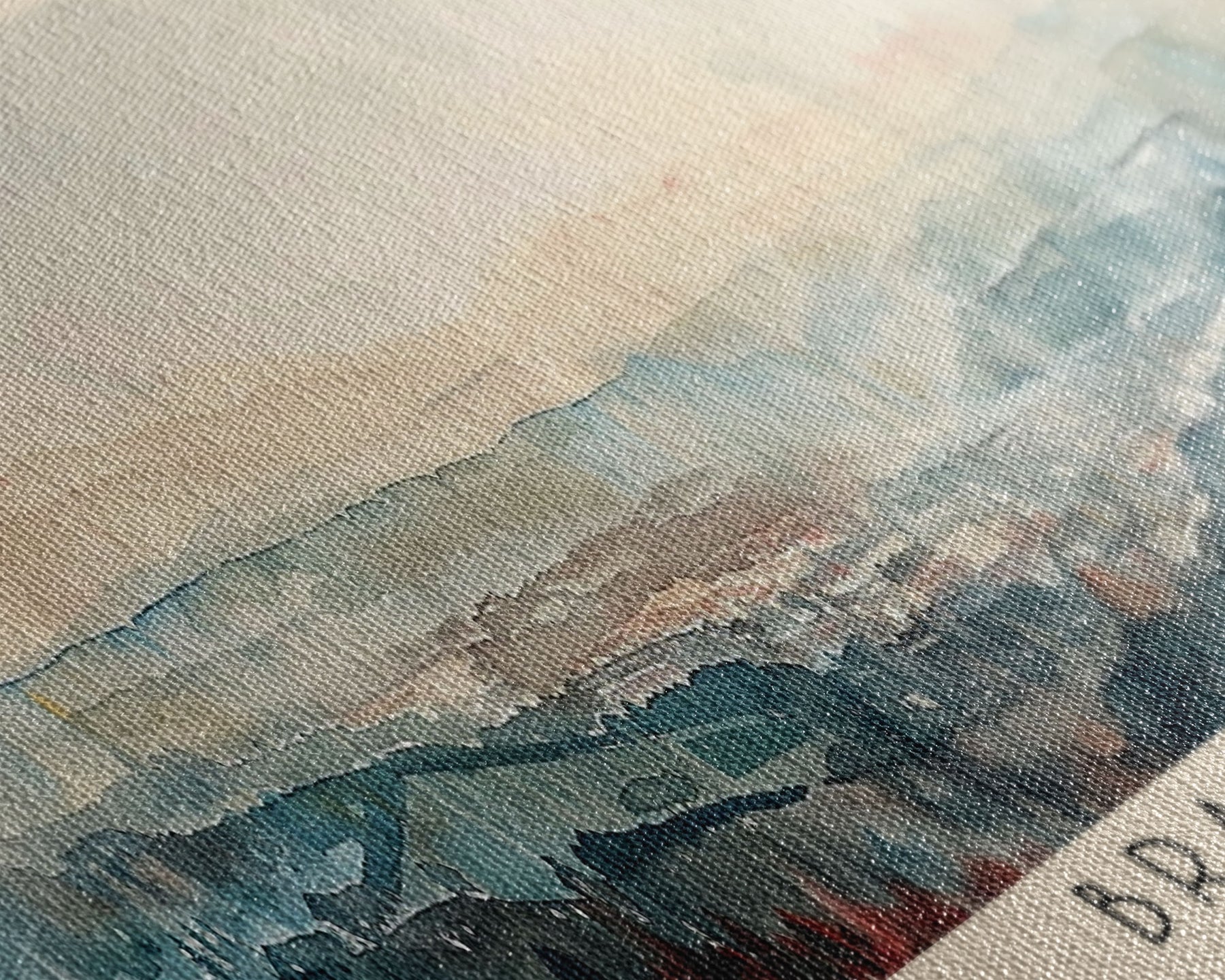 Most of our canvases are made in the USA, with the exception of canvases ordered with the light oak unstained frames, and any large canvases (24x48, 30x60, 16x48 and 20x60) ordered WITH a frame. These are temporarily made in and shipped from Europe, while we try to find a more consistent supplier in the USA.