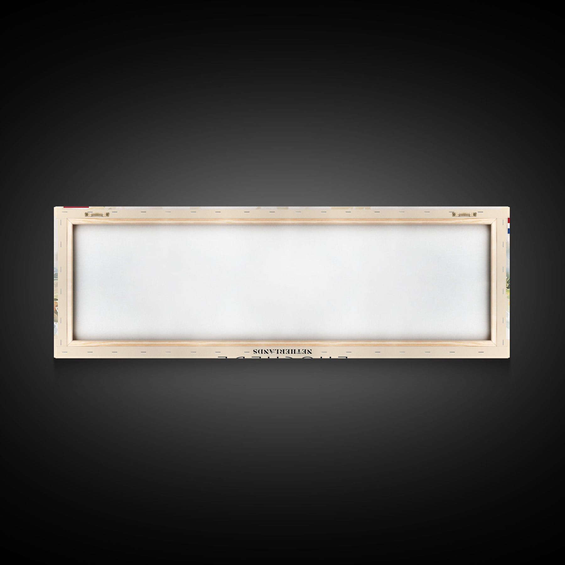 Most of our canvases are made in the USA, with the exception of canvases ordered with the light oak unstained frames, and any large canvases (24x48, 30x60, 16x48 and 20x60) ordered WITH a frame. These are temporarily made in and shipped from Europe, while we try to find a more consistent supplier in the USA.