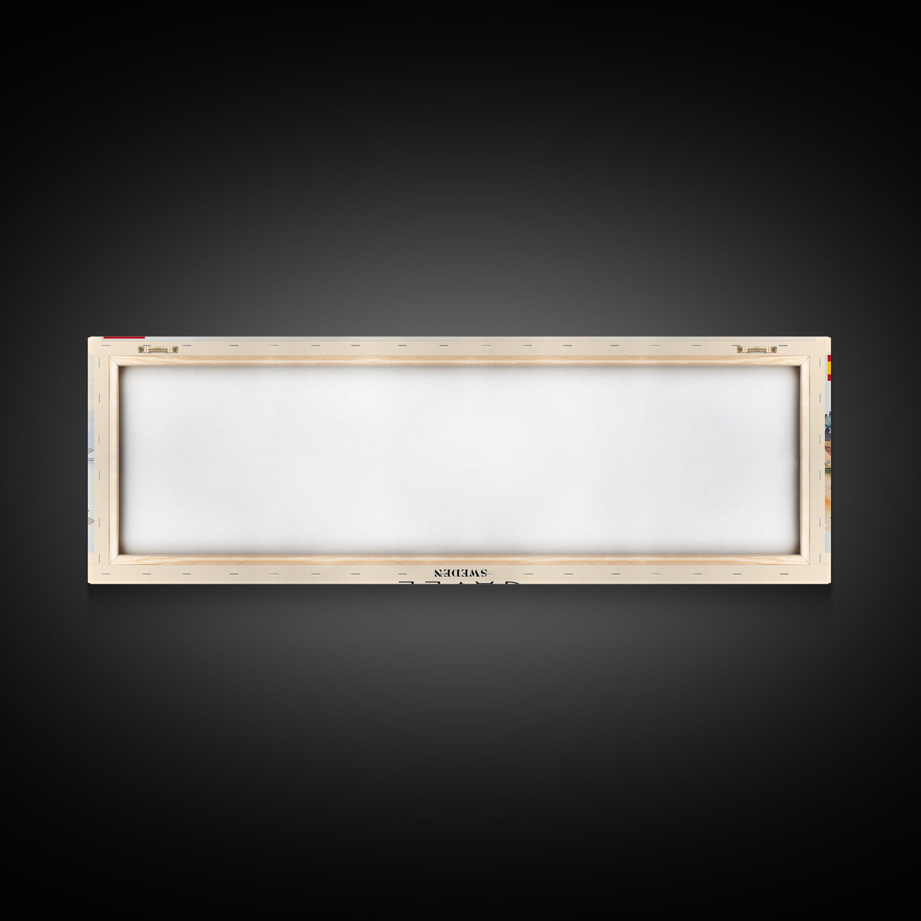 Most of our canvases are made in the USA, with the exception of canvases ordered with the light oak unstained frames, and any large canvases (24x48, 30x60, 16x48 and 20x60) ordered WITH a frame. These are temporarily made in and shipped from Europe, while we try to find a more consistent supplier in the USA.