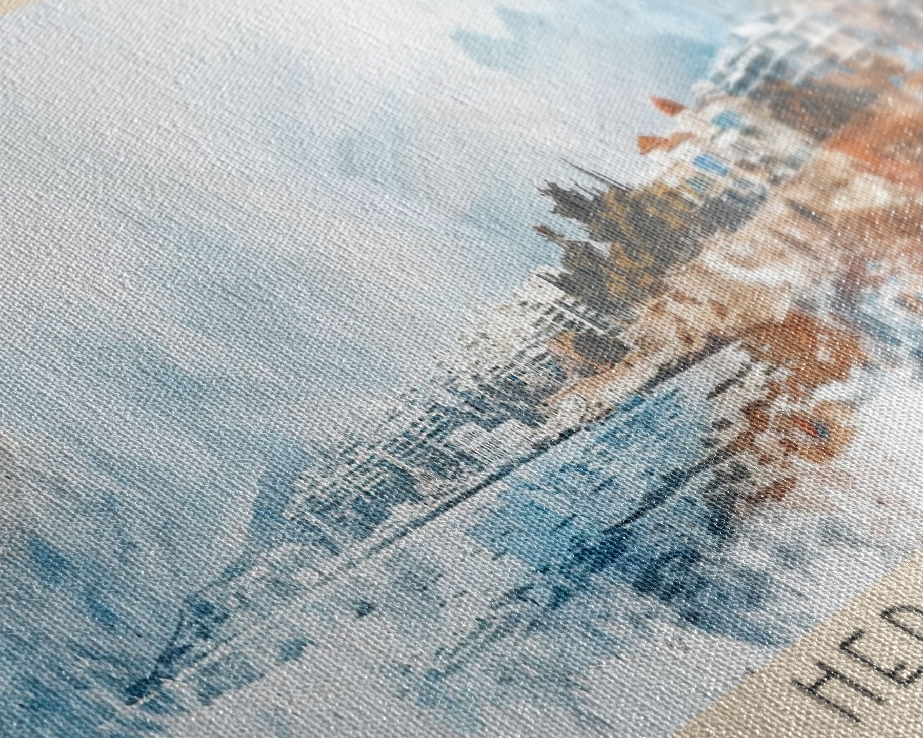 Heraklion Greece Panoramic Travel Poster, Framed Canvas Print or Metal Wall Art, Travel Art, Home Decor, Panoramic Painting, Midcentury Art