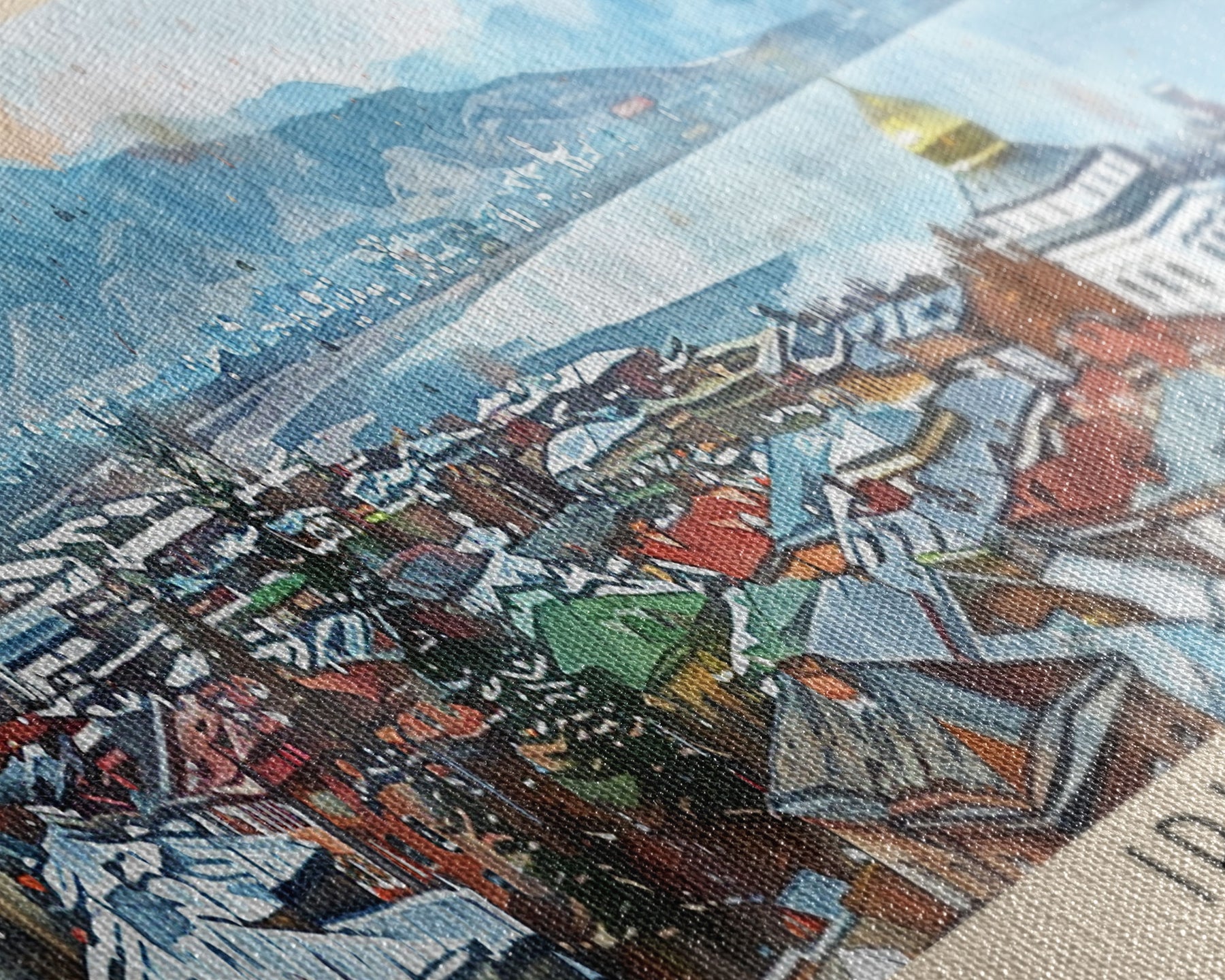 Most of our canvases are made in the USA, with the exception of canvases ordered with the light oak unstained frames, and any large canvases (24x48, 30x60, 16x48 and 20x60) ordered WITH a frame. These are temporarily made in and shipped from Europe, while we try to find a more consistent supplier in the USA.