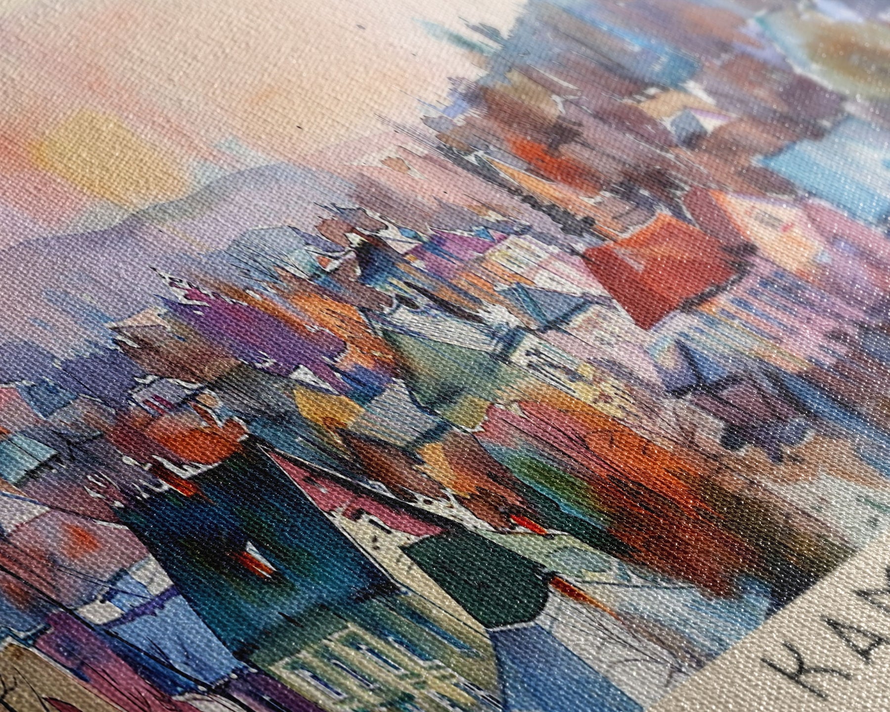 Most of our canvases are made in the USA, with the exception of canvases ordered with the light oak unstained frames, and any large canvases (24x48, 30x60, 16x48 and 20x60) ordered WITH a frame. These are temporarily made in and shipped from Europe, while we try to find a more consistent supplier in the USA.