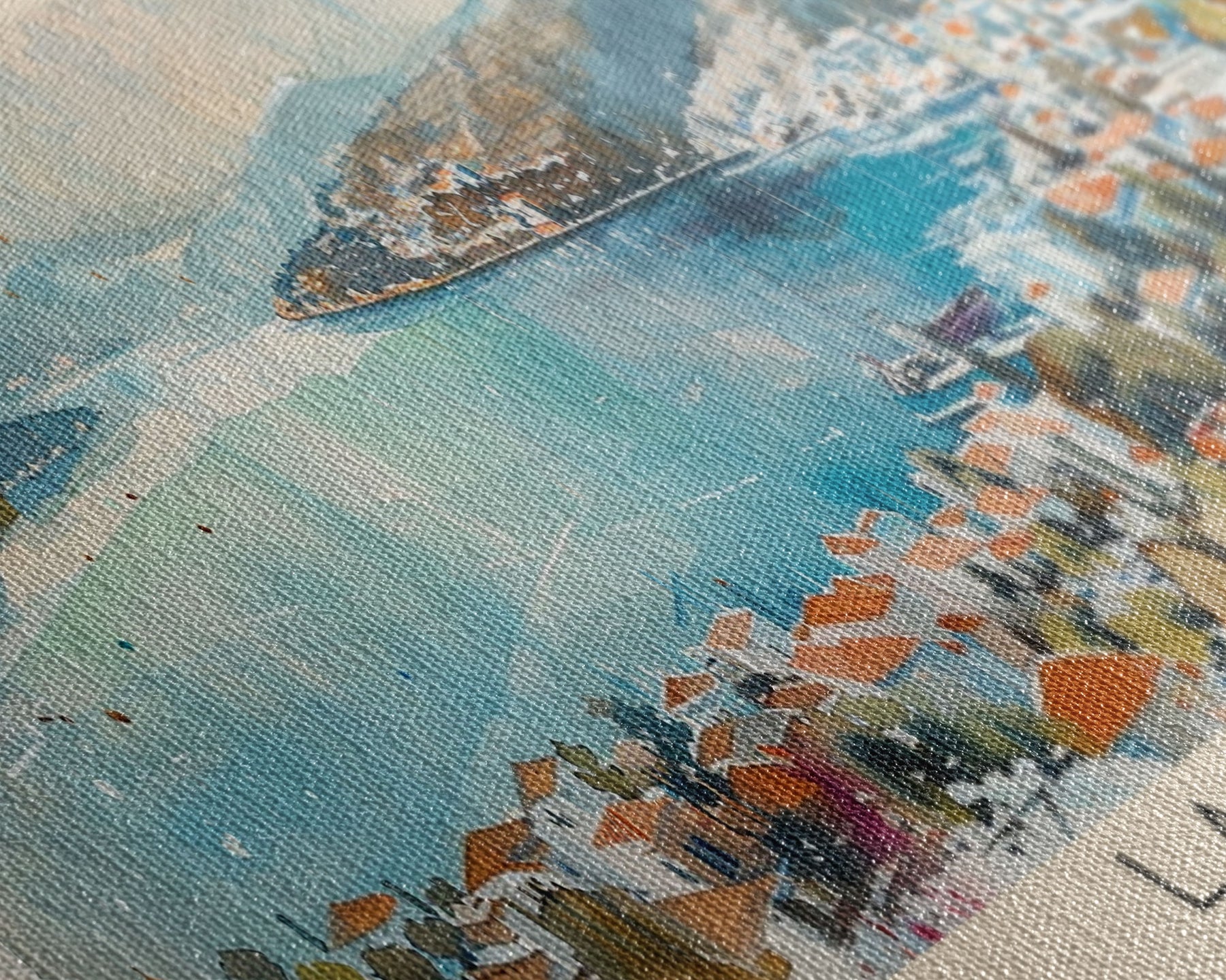 Most of our canvases are made in the USA, with the exception of canvases ordered with the light oak unstained frames, and any large canvases (24x48, 30x60, 16x48 and 20x60) ordered WITH a frame. These are temporarily made in and shipped from Europe, while we try to find a more consistent supplier in the USA.