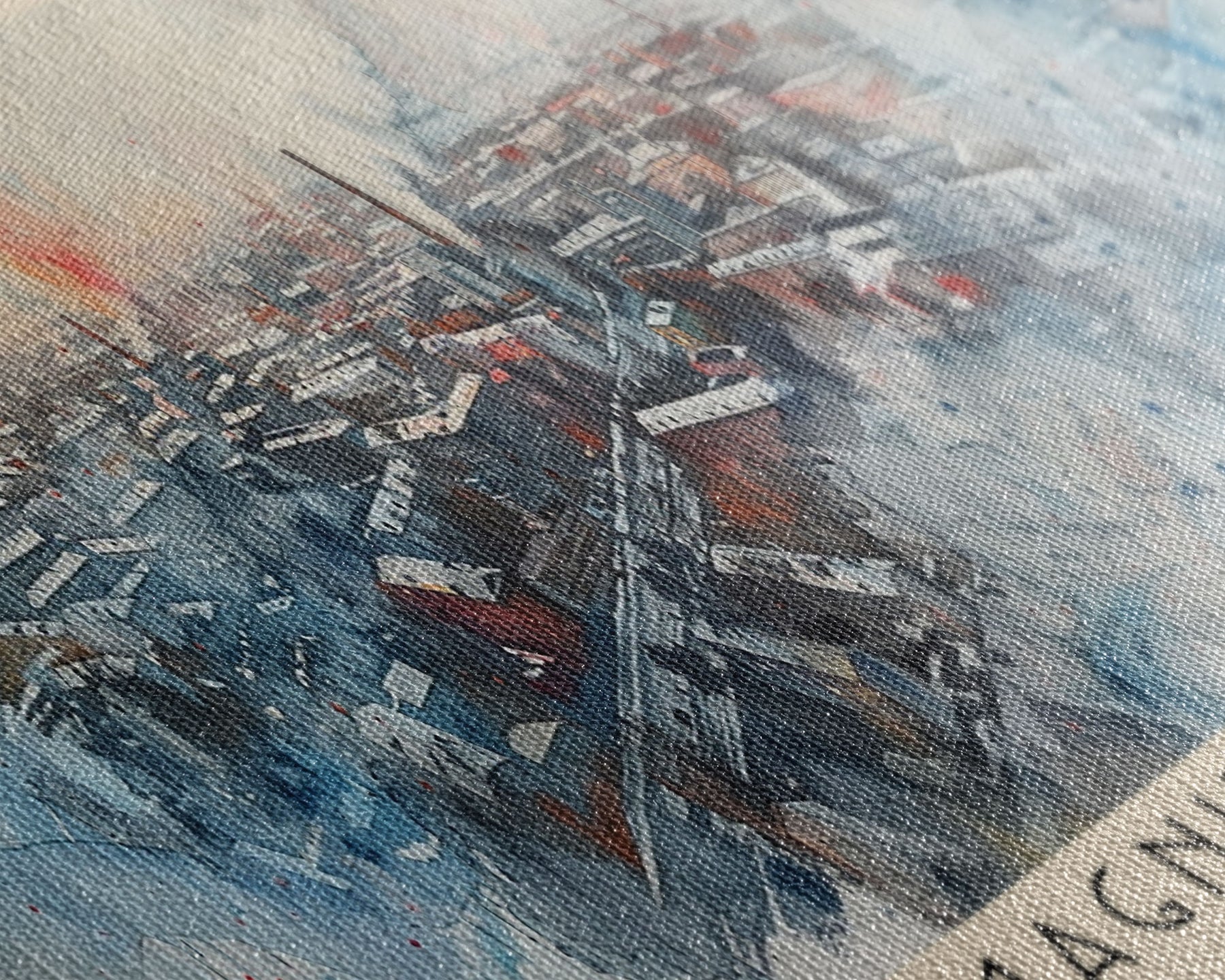 Most of our canvases are made in the USA, with the exception of canvases ordered with the light oak unstained frames, and any large canvases (24x48, 30x60, 16x48 and 20x60) ordered WITH a frame. These are temporarily made in and shipped from Europe, while we try to find a more consistent supplier in the USA.
