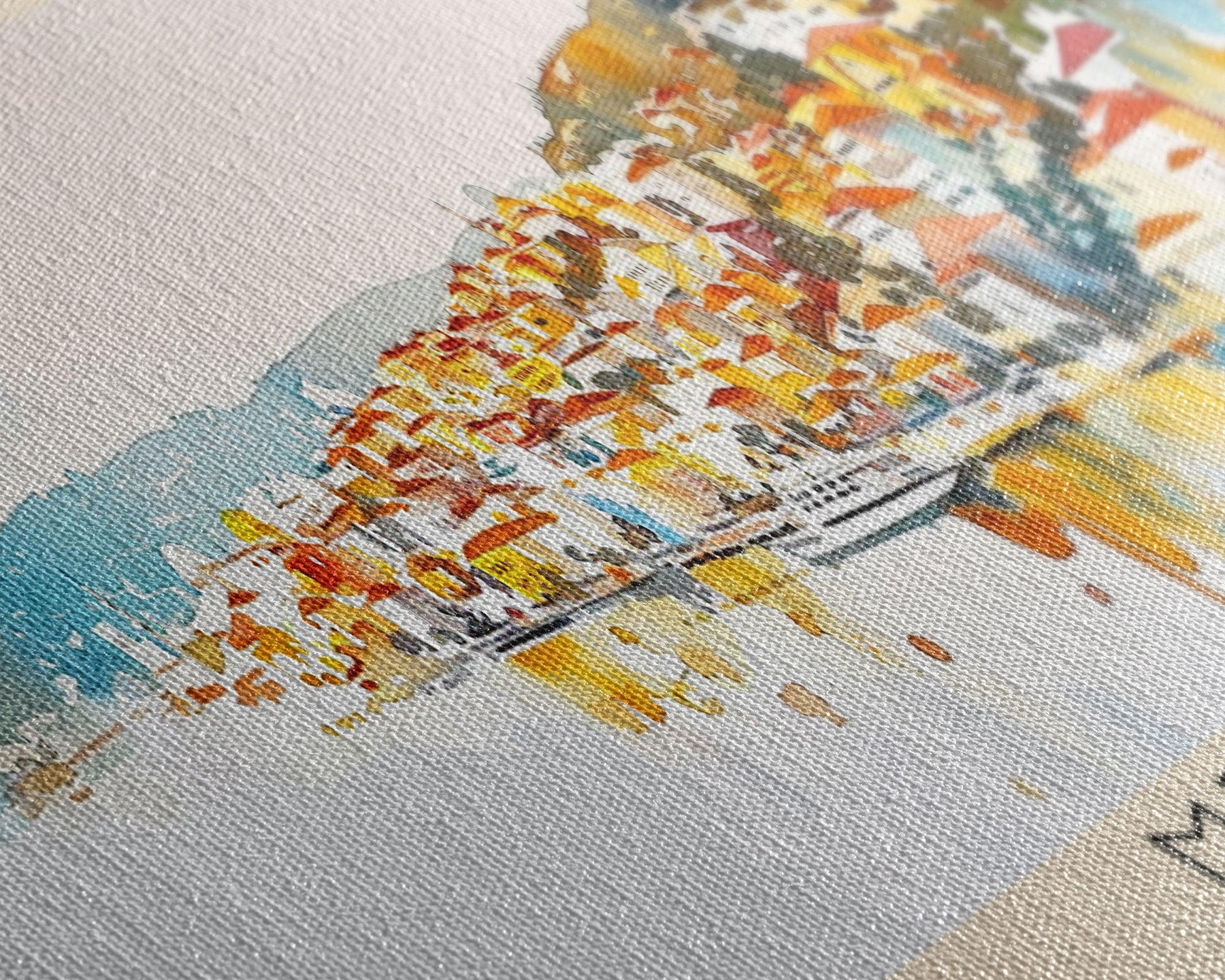 Most of our canvases are made in the USA, with the exception of canvases ordered with the light oak unstained frames, and any large canvases (24x48, 30x60, 16x48 and 20x60) ordered WITH a frame. These are temporarily made in and shipped from Europe, while we try to find a more consistent supplier in the USA.