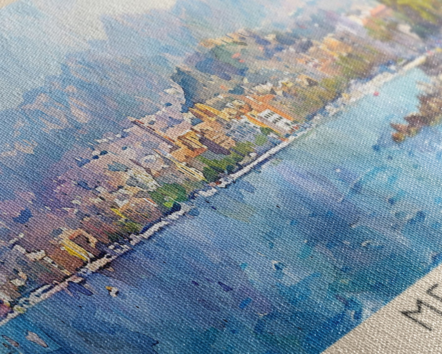 Most of our canvases are made in the USA, with the exception of canvases ordered with the light oak unstained frames, and any large canvases (24x48, 30x60, 16x48 and 20x60) ordered WITH a frame. These are temporarily made in and shipped from Europe, while we try to find a more consistent supplier in the USA.