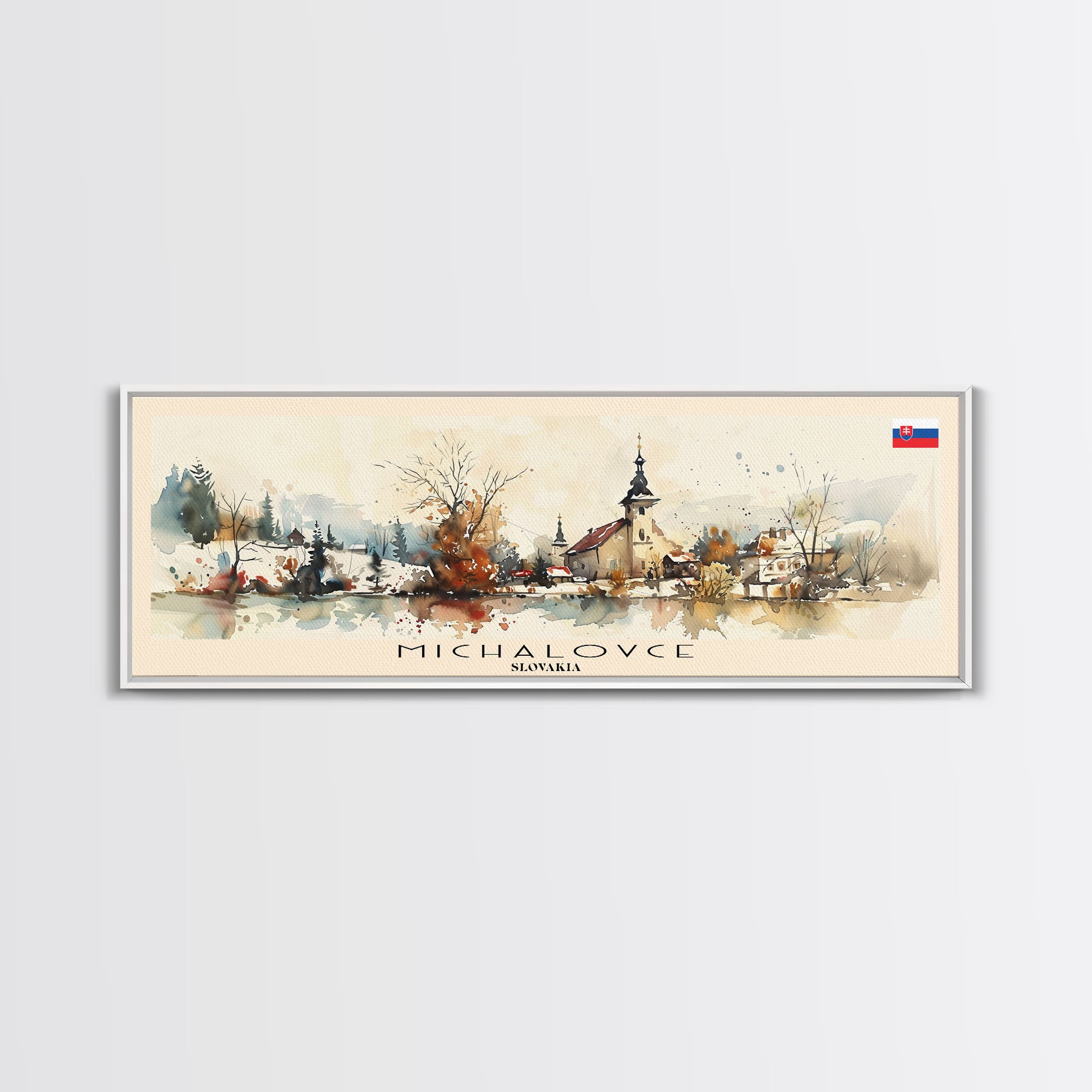 Michalovce Slovakia Travel Art, City Art, Framed Canvas Print or Metal Wall Art, Europe Travel Poster, Panoramic Wall Art, Extra Wide Wall Art