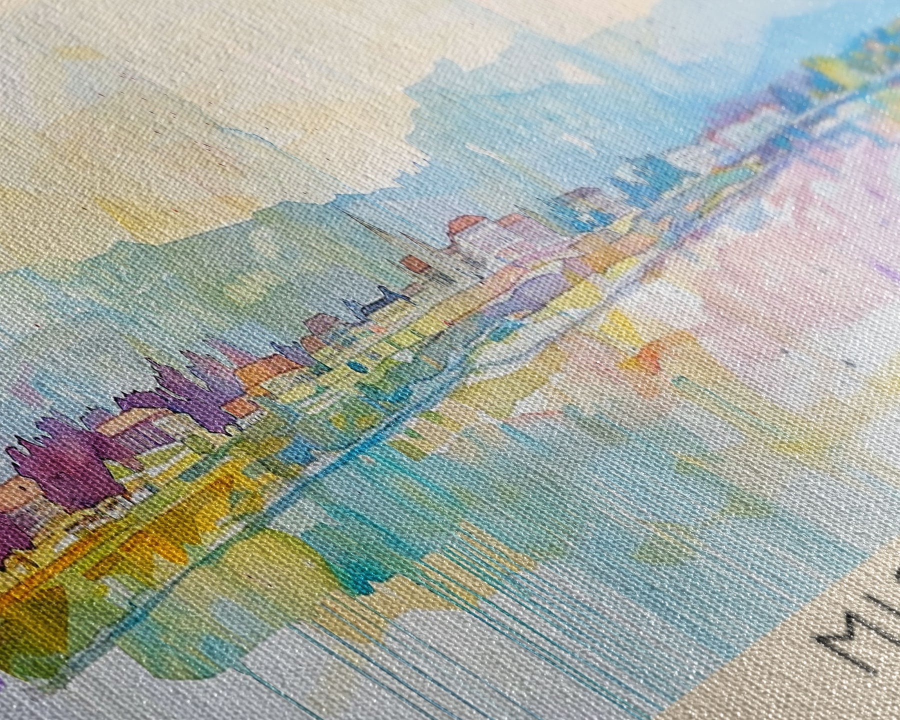 Most of our canvases are made in the USA, with the exception of canvases ordered with the light oak unstained frames, and any large canvases (24x48, 30x60, 16x48 and 20x60) ordered WITH a frame. These are temporarily made in and shipped from Europe, while we try to find a more consistent supplier in the USA.